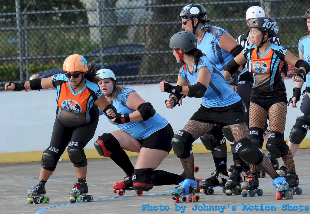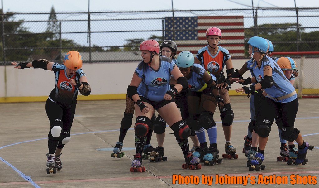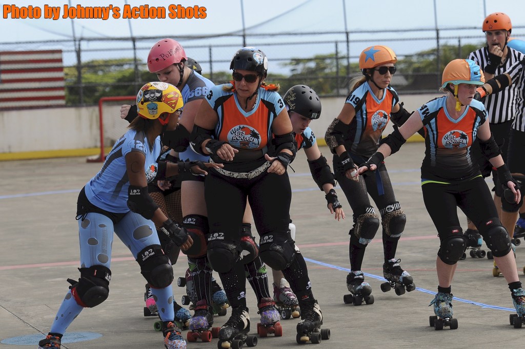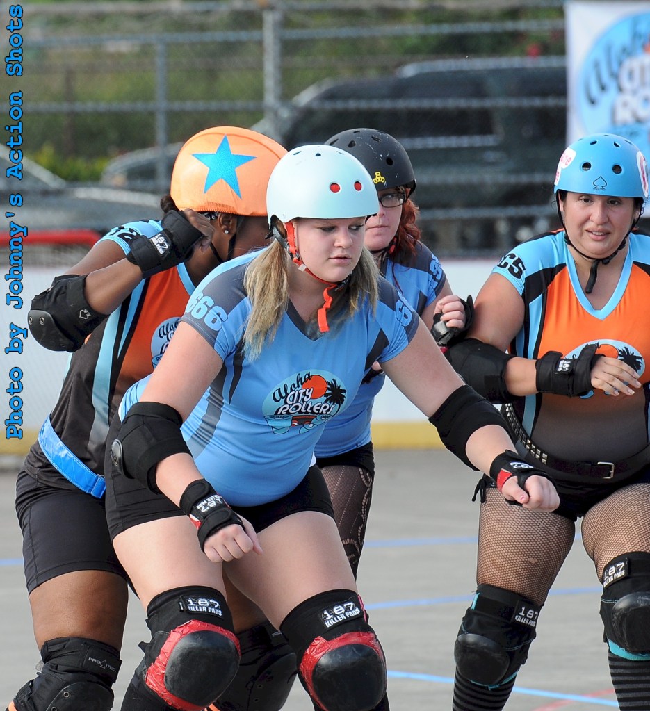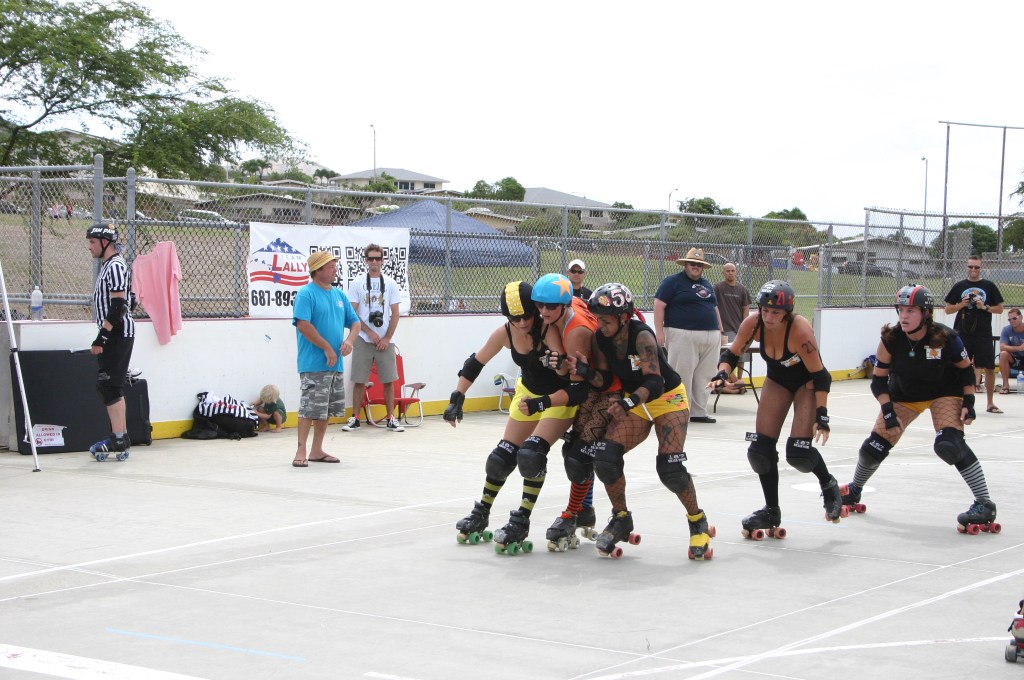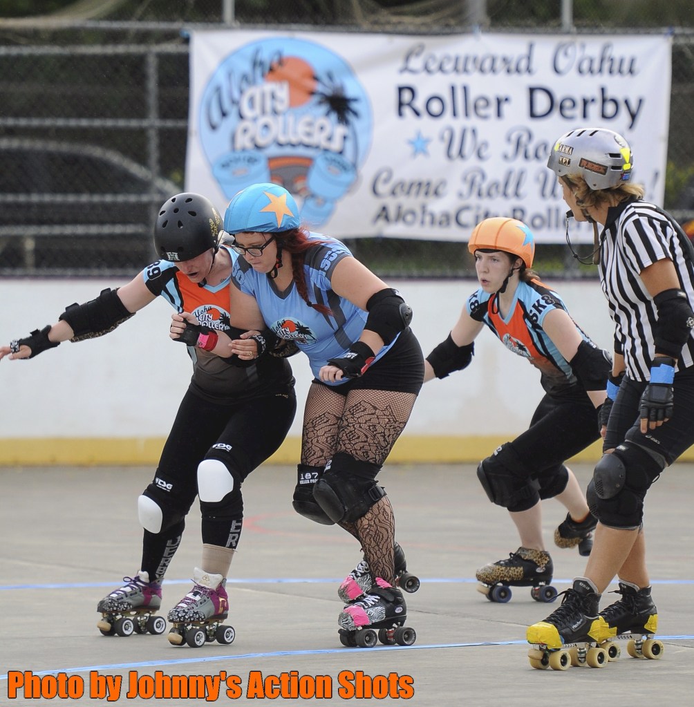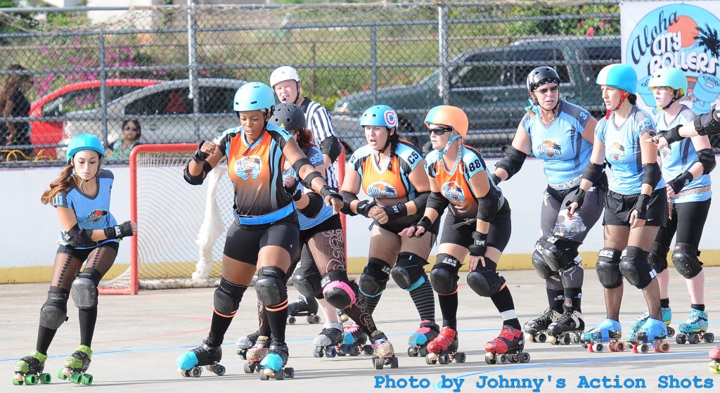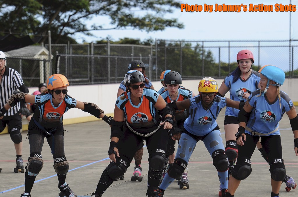 Aloha City Rollers had two home teams, the Dash Dolls and the Sneaky Tikis, which played monthly games during each roller derby season. ACR also had an all star team the Rock Stars which played against other leagues. This is a collection of some of the action shots from games and scrimmages.