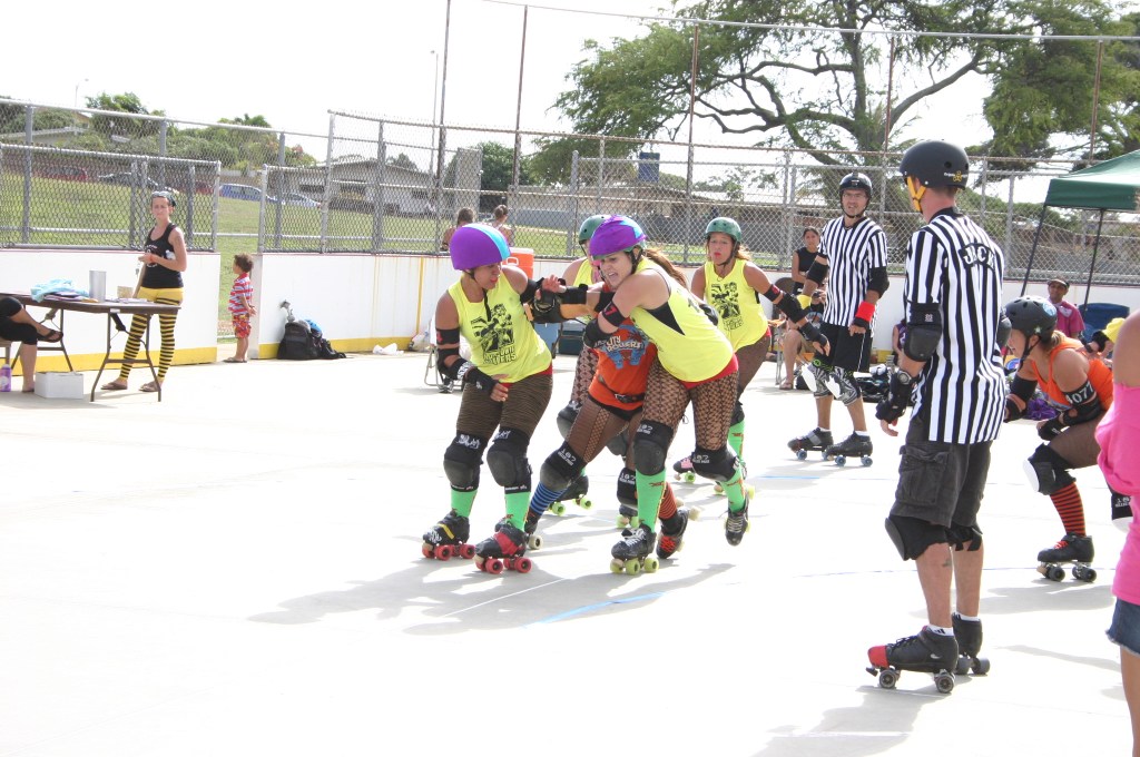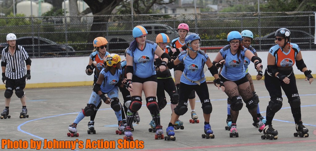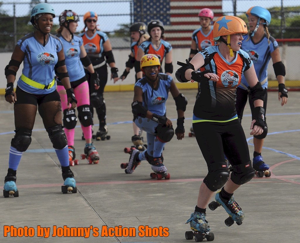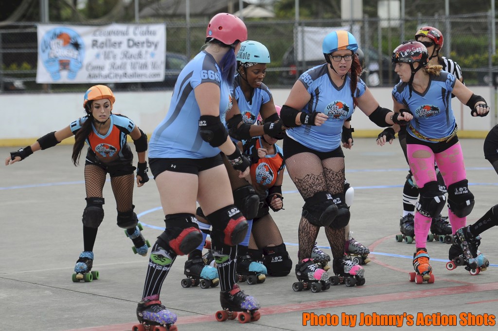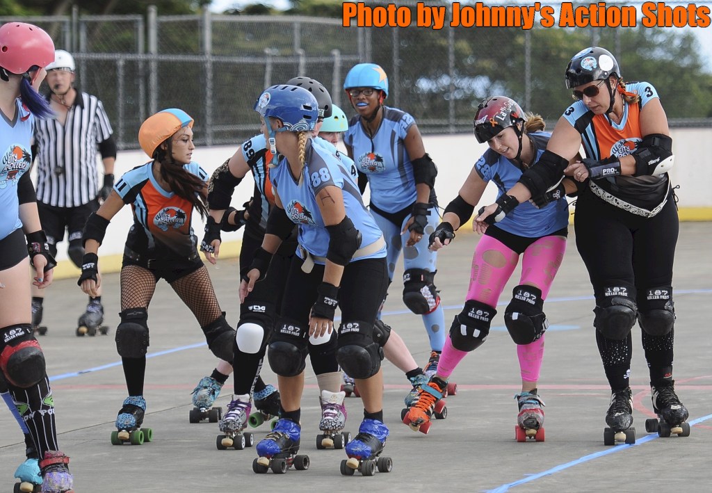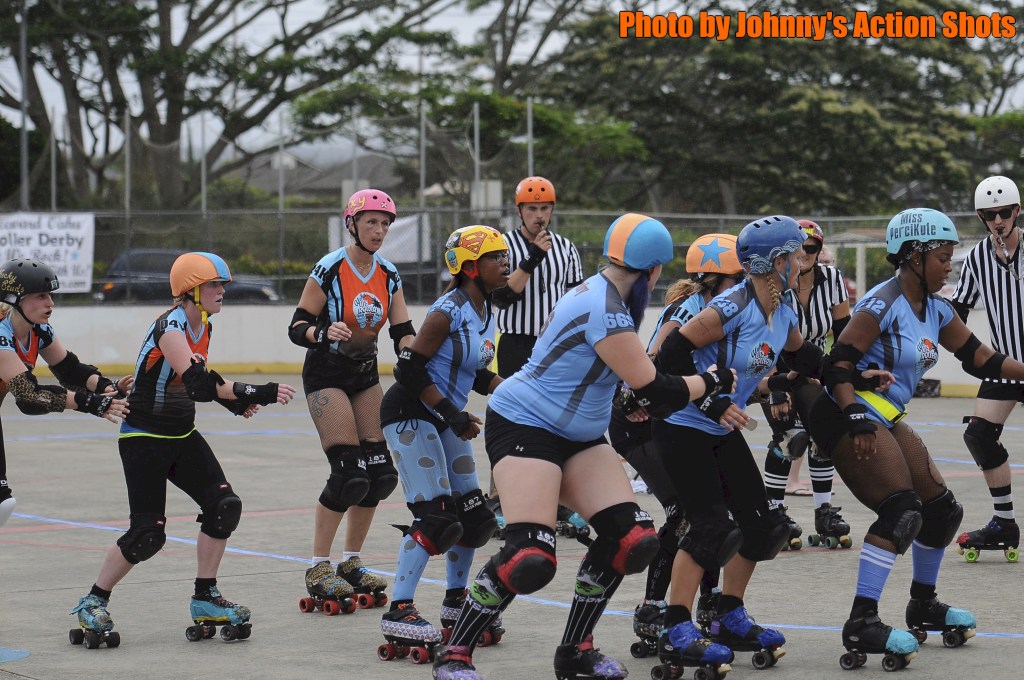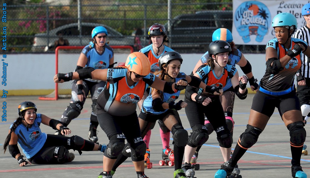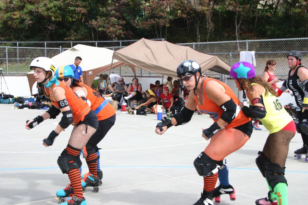 Aloha City Rollers had two home teams, the Dash Dolls and the Sneaky Tikis, which played monthly games during each roller derby season. ACR also had an all star team the Rock Stars which played against other leagues. This is a collection of some of the action shots from games and scrimmages.