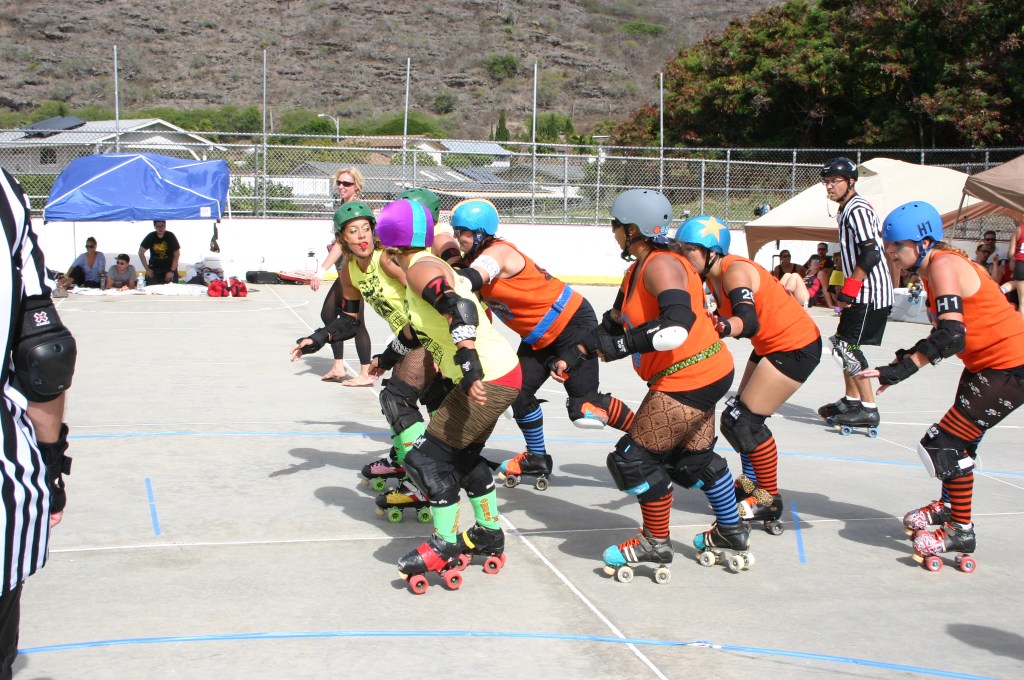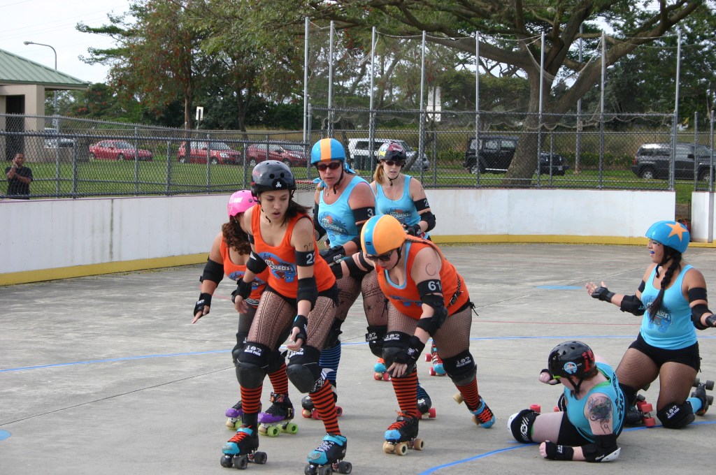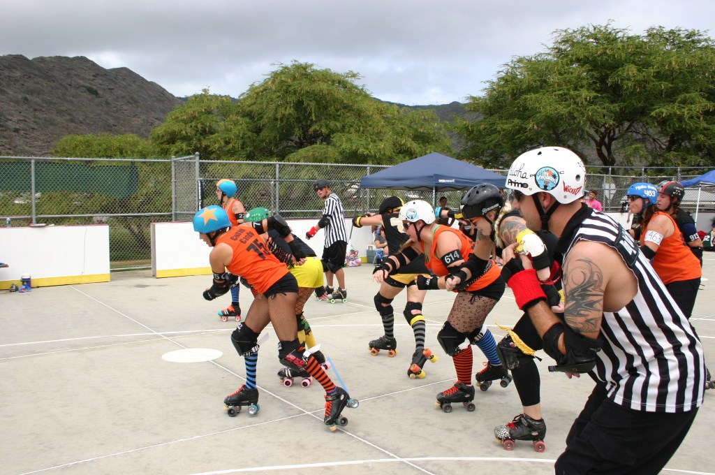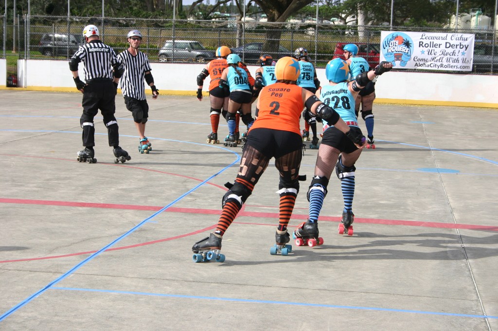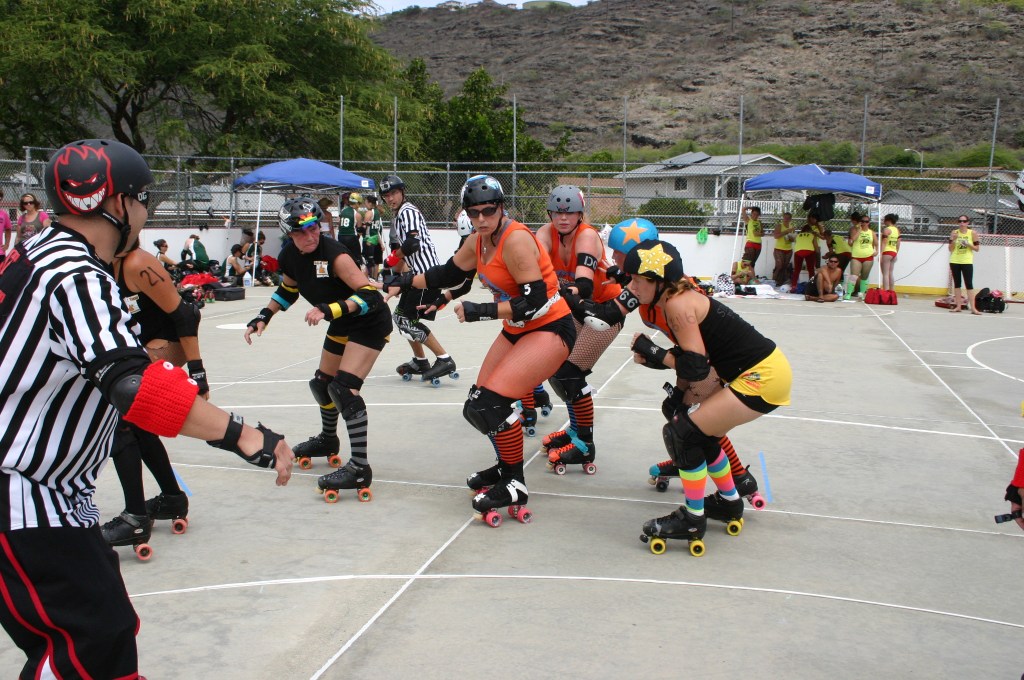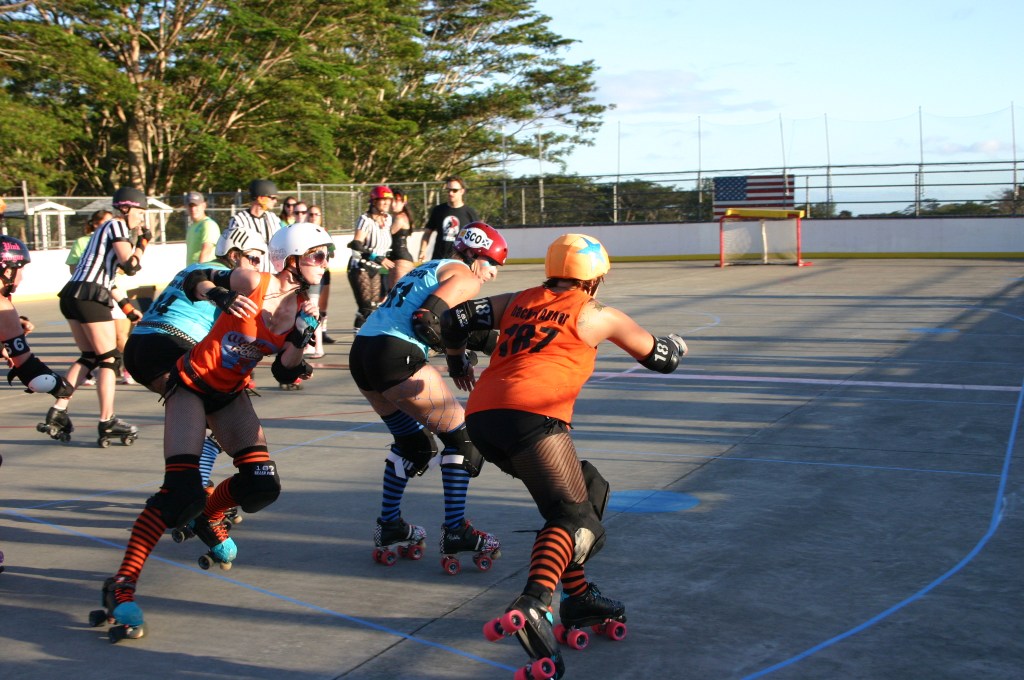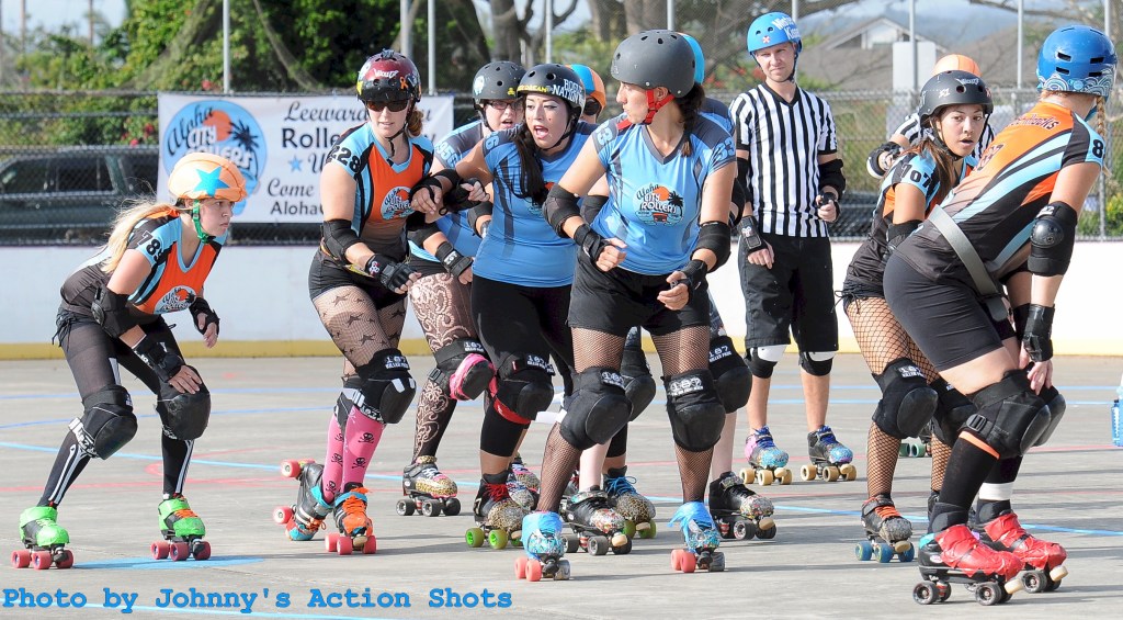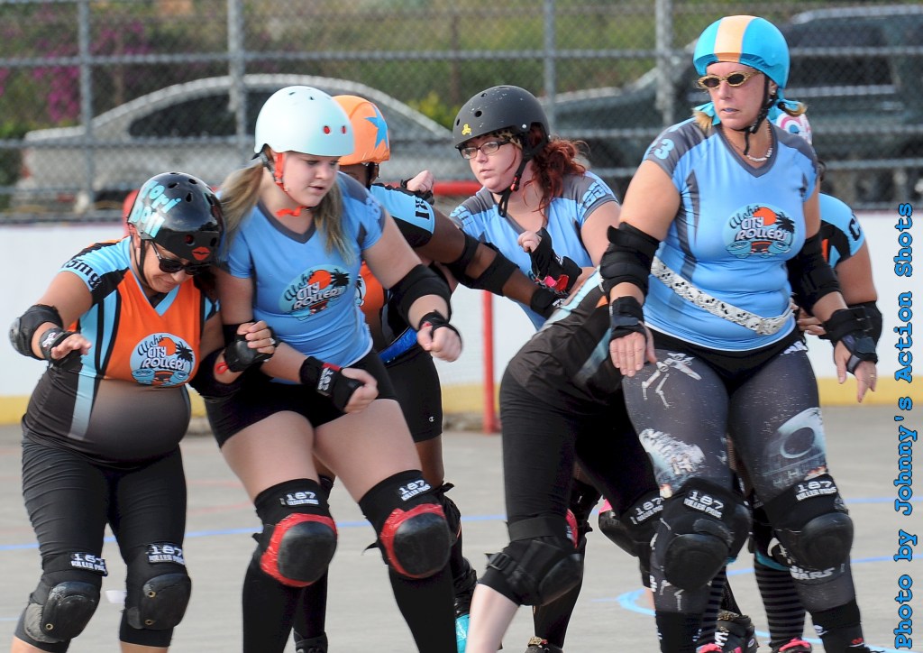 Aloha City Rollers had two home teams, the Dash Dolls and the Sneaky Tikis, which played monthly games during each roller derby season. ACR also had an all star team the Rock Stars which played against other leagues. This is a collection of some of the action shots from games and scrimmages.