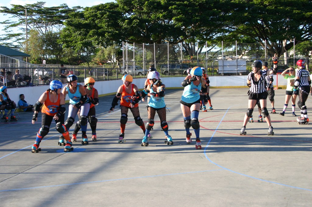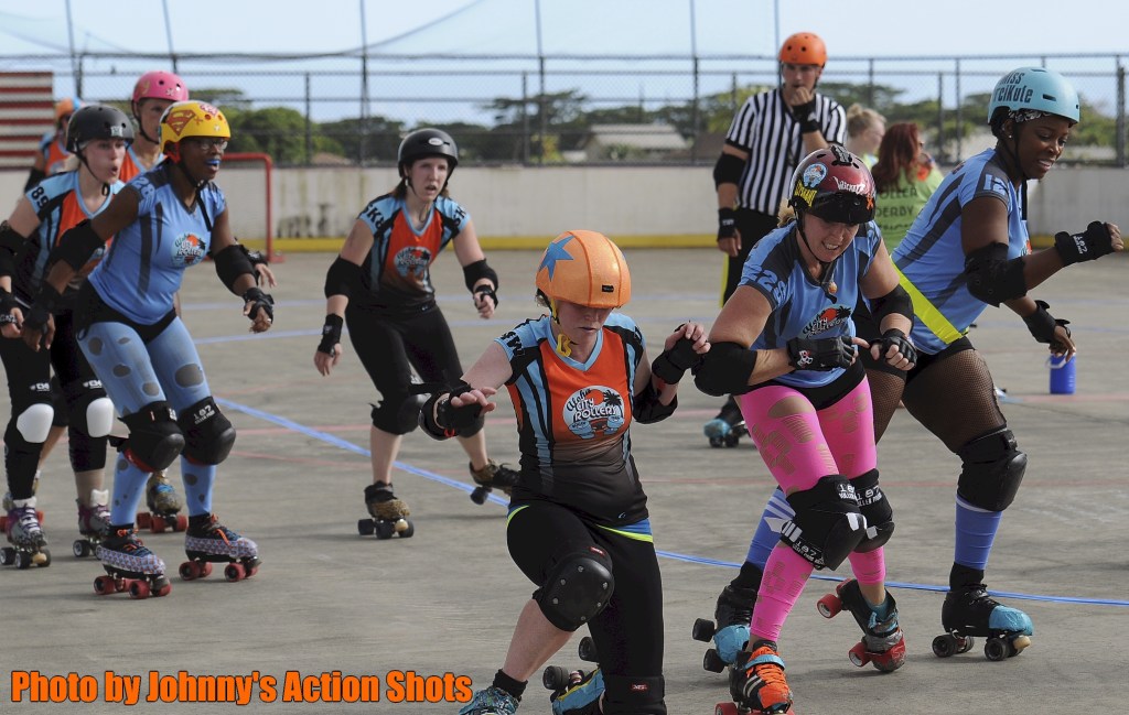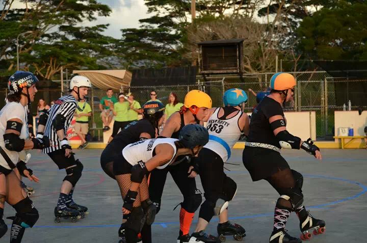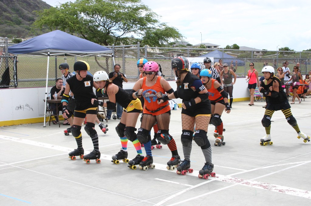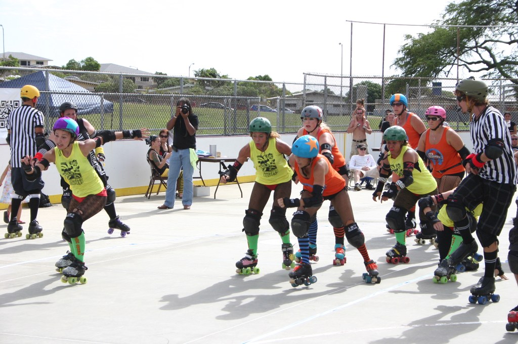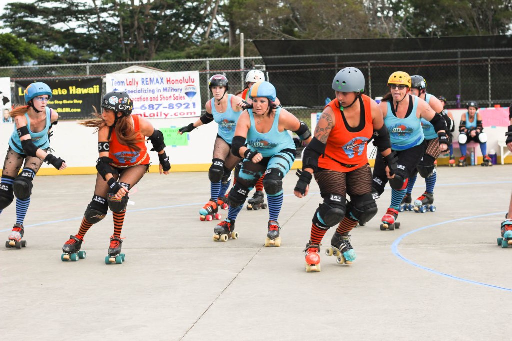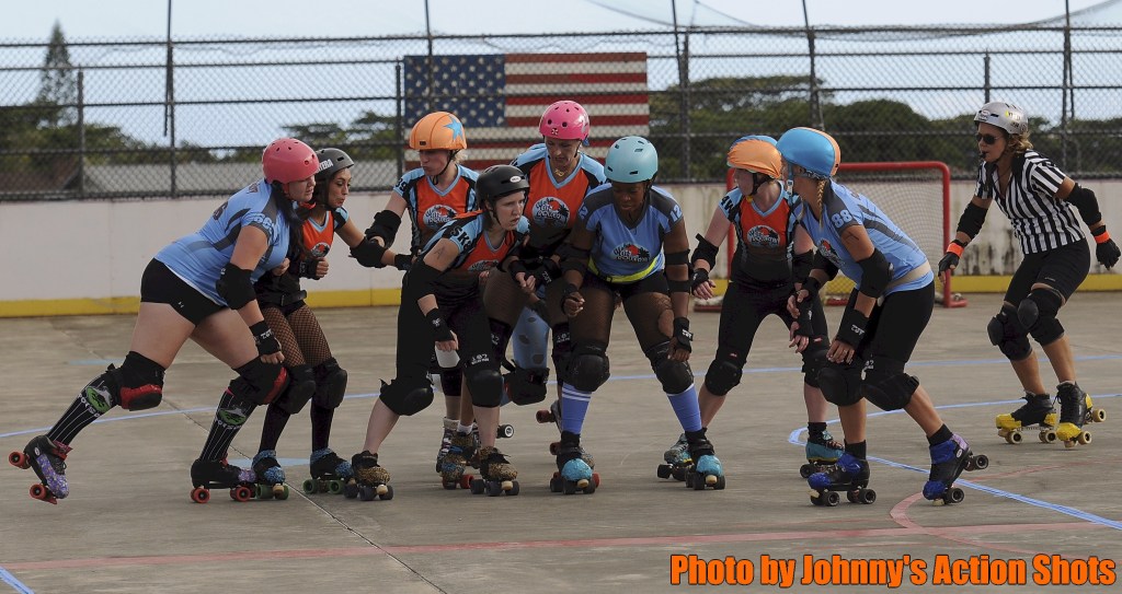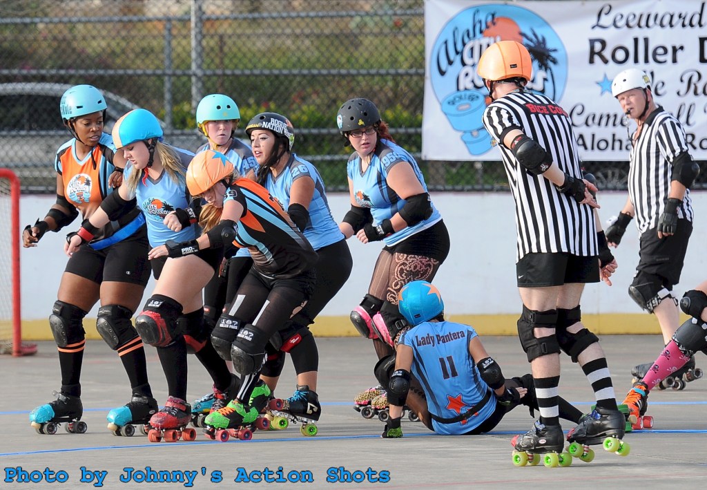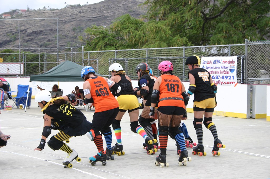 Aloha City Rollers had two home teams, the Dash Dolls and the Sneaky Tikis, which played monthly games during each roller derby season. ACR also had an all star team the Rock Stars which played against other leagues. This is a collection of some of the action shots from games and scrimmages.