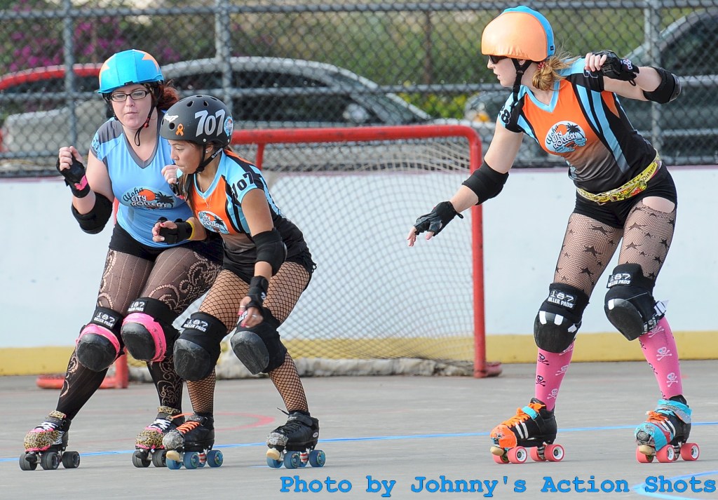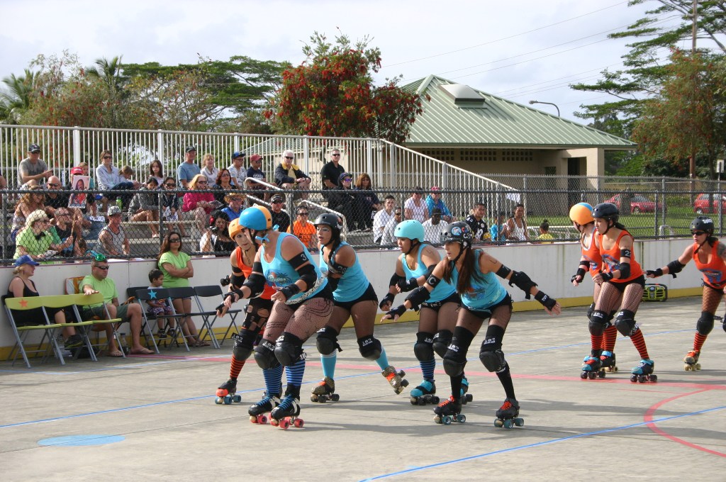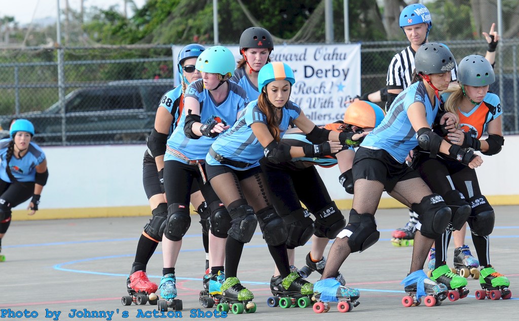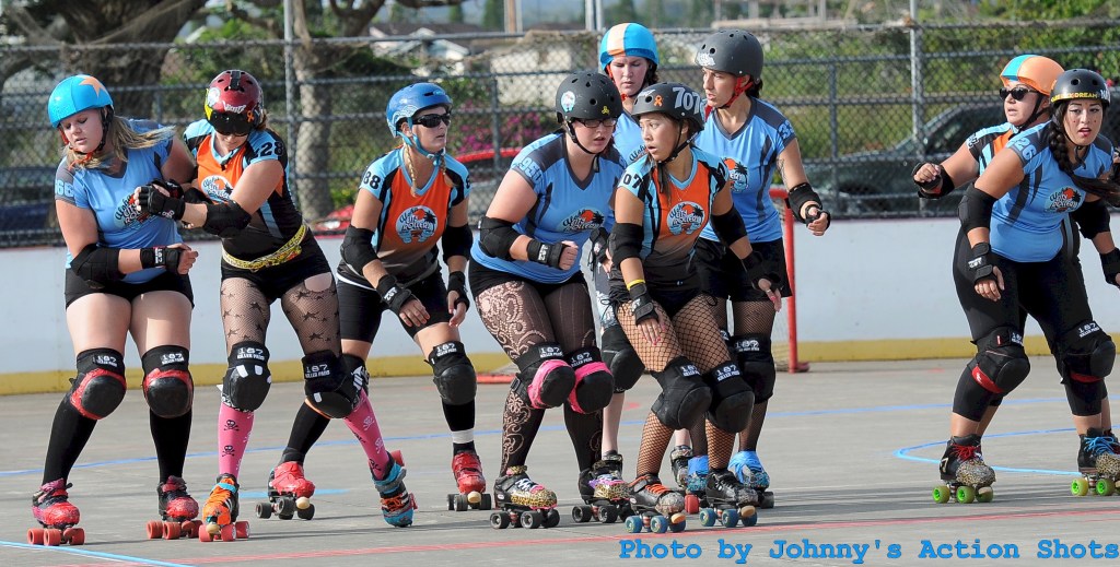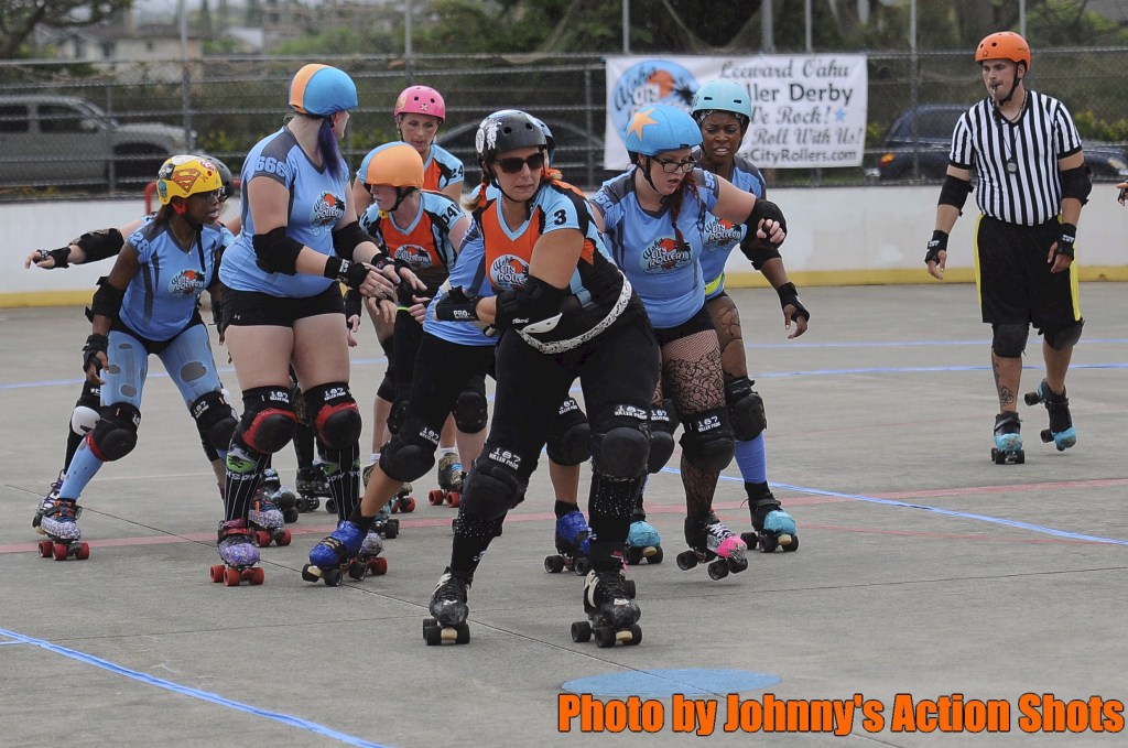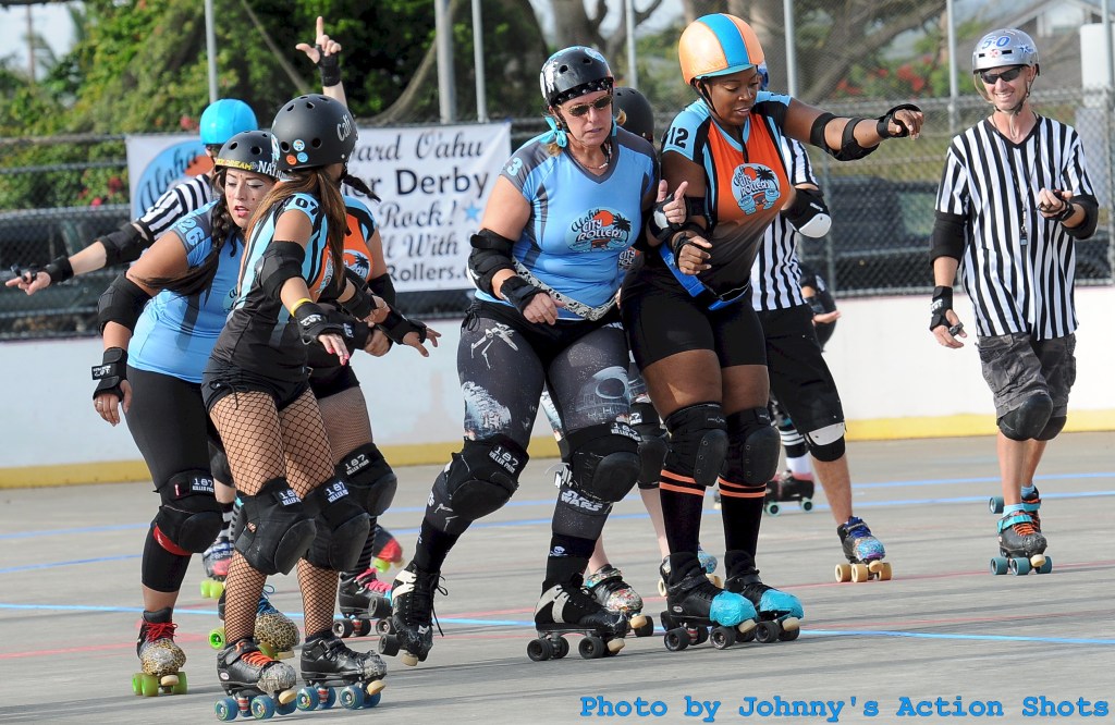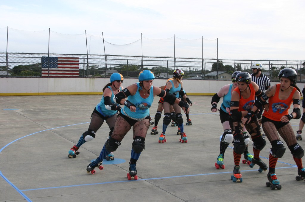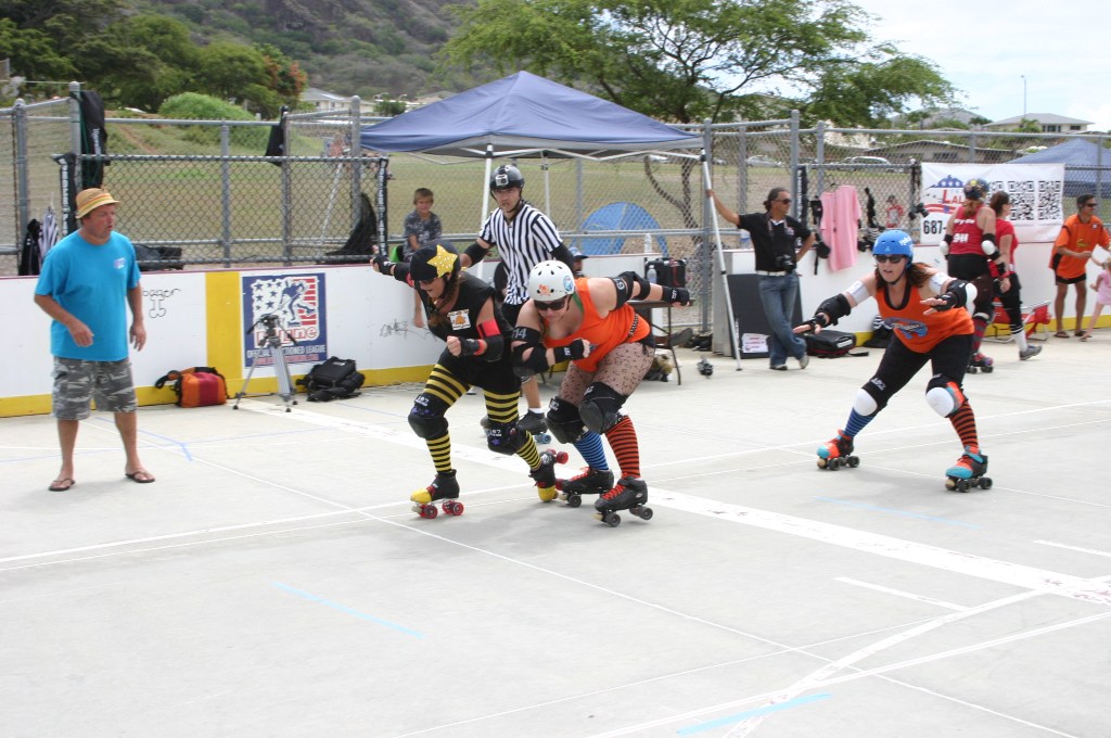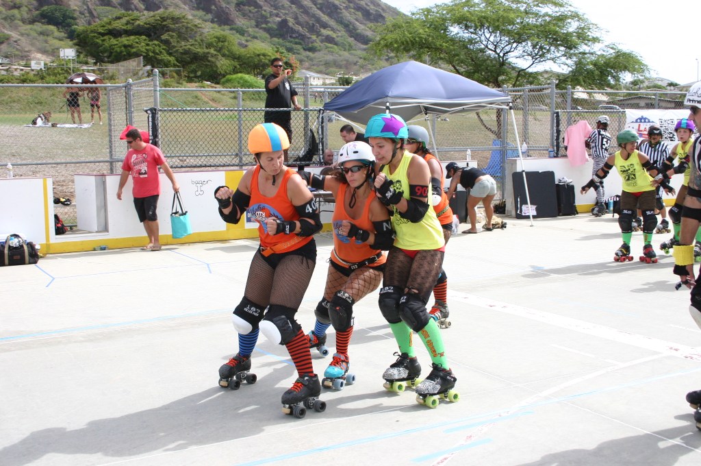 Aloha City Rollers had two home teams, the Dash Dolls and the Sneaky Tikis, which played monthly games during each roller derby season. ACR also had an all star team the Rock Stars which played against other leagues. This is a collection of some of the action shots from games and scrimmages.