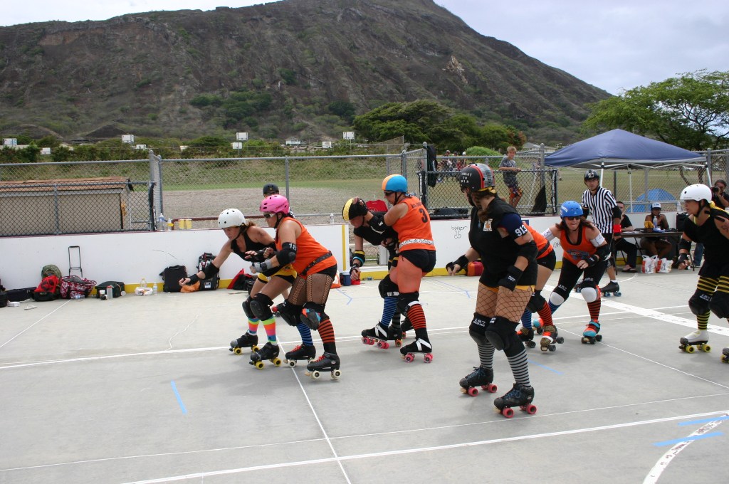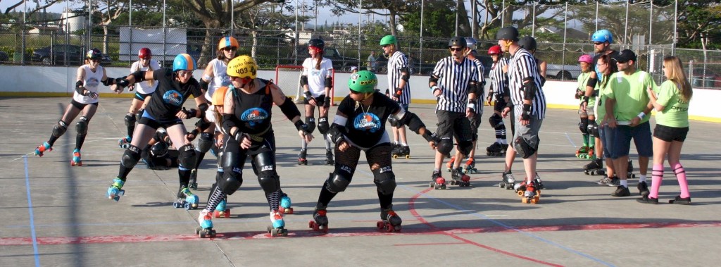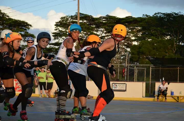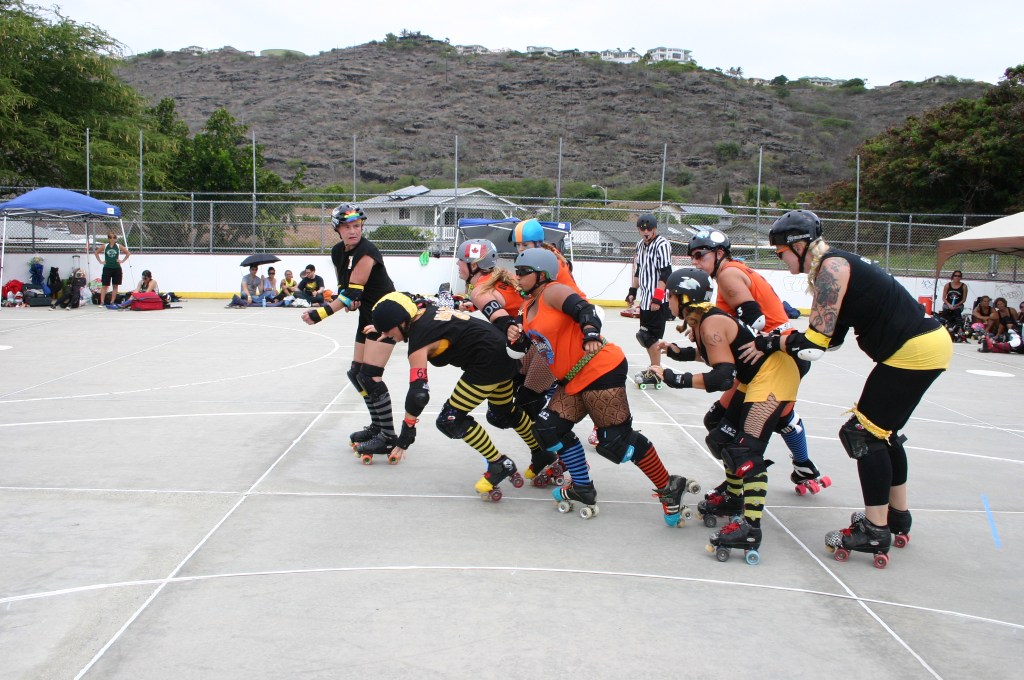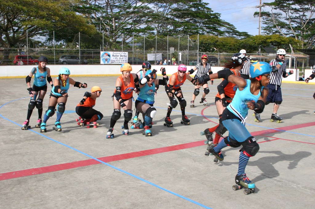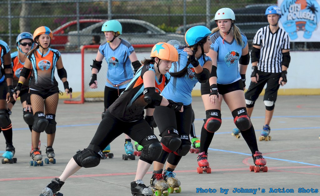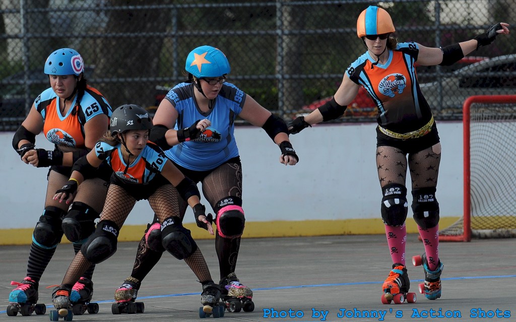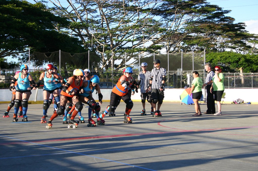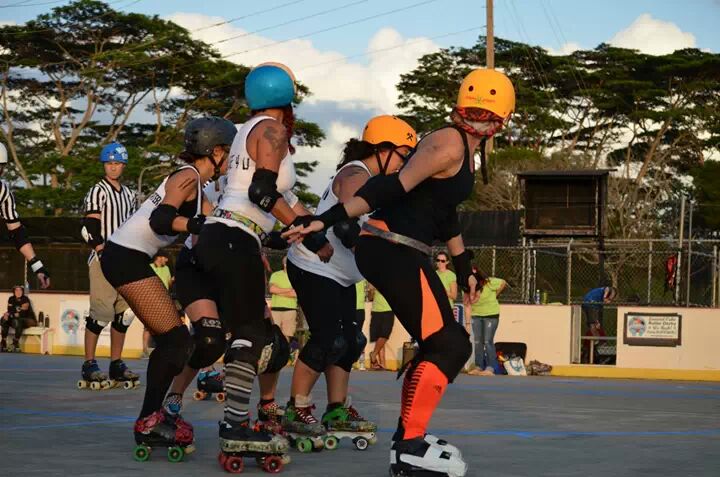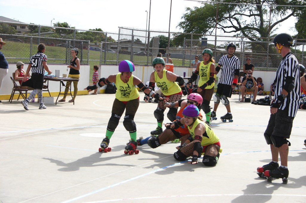 Aloha City Rollers had two home teams, the Dash Dolls and the Sneaky Tikis, which played monthly games during each roller derby season. ACR also had an all star team the Rock Stars which played against other leagues. This is a collection of some of the action shots from games and scrimmages.