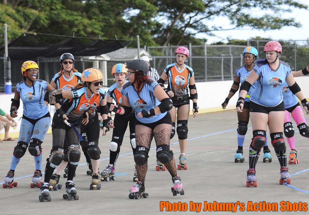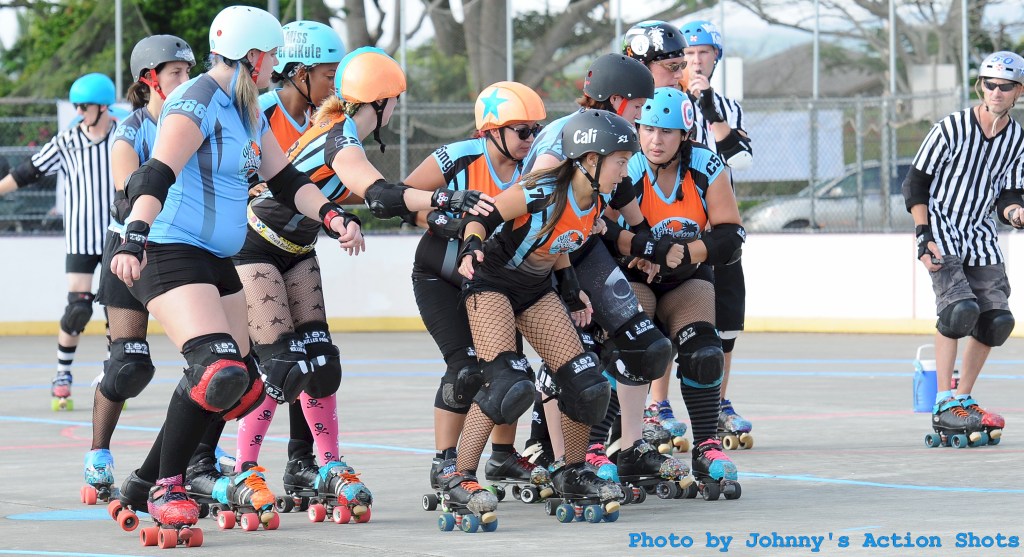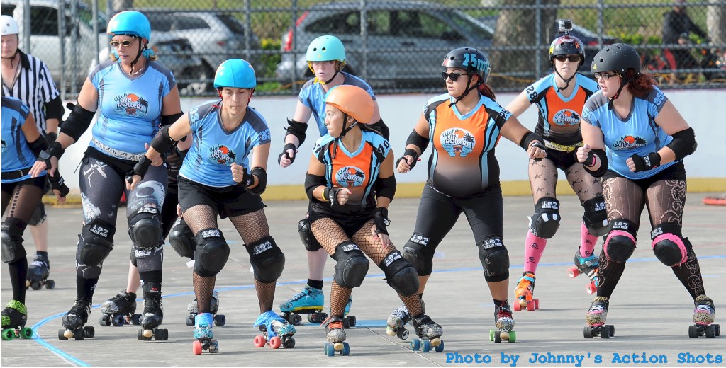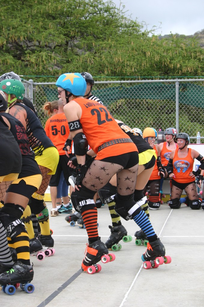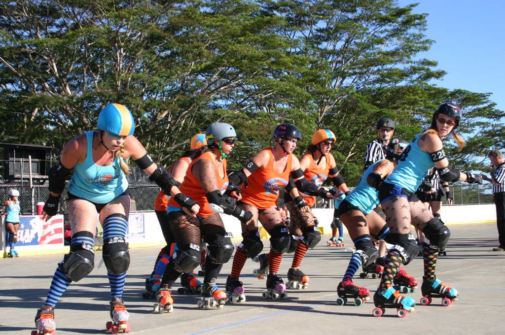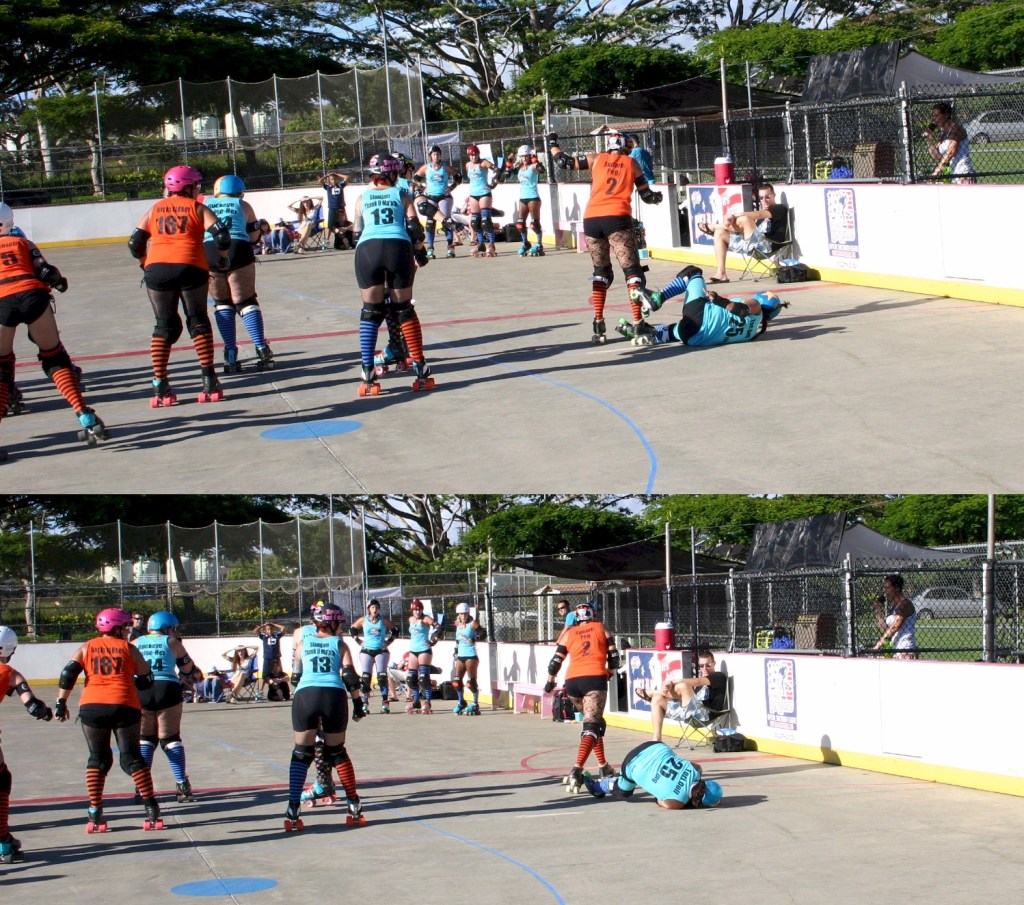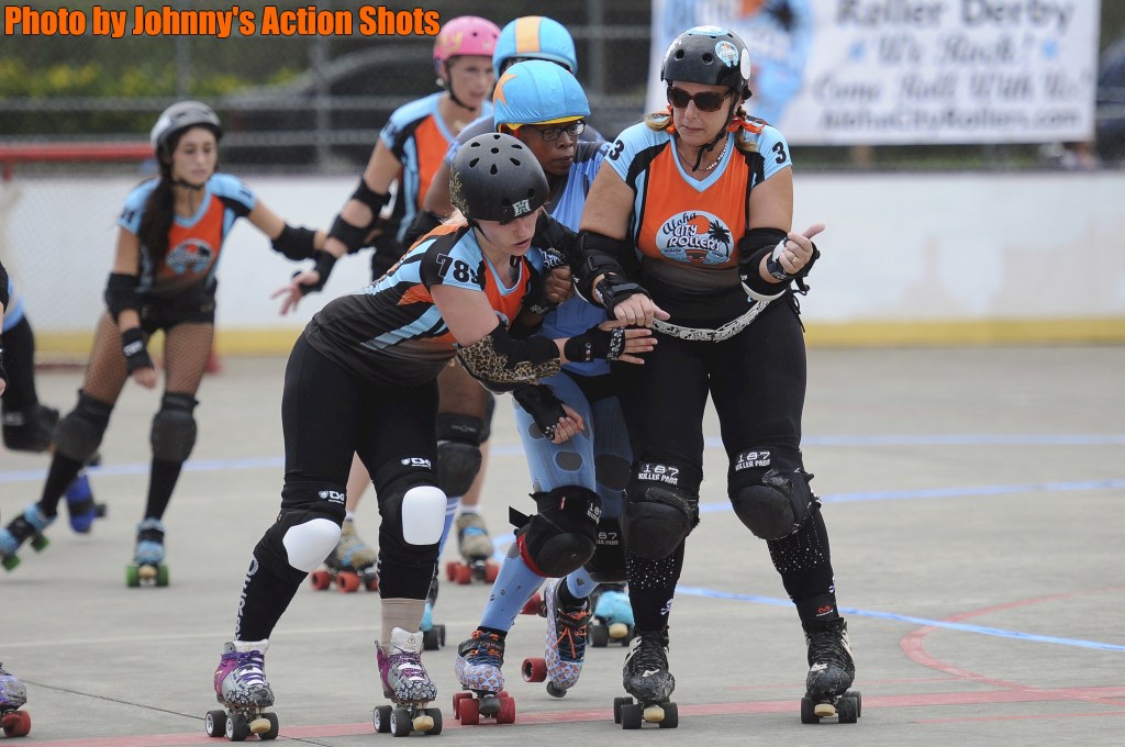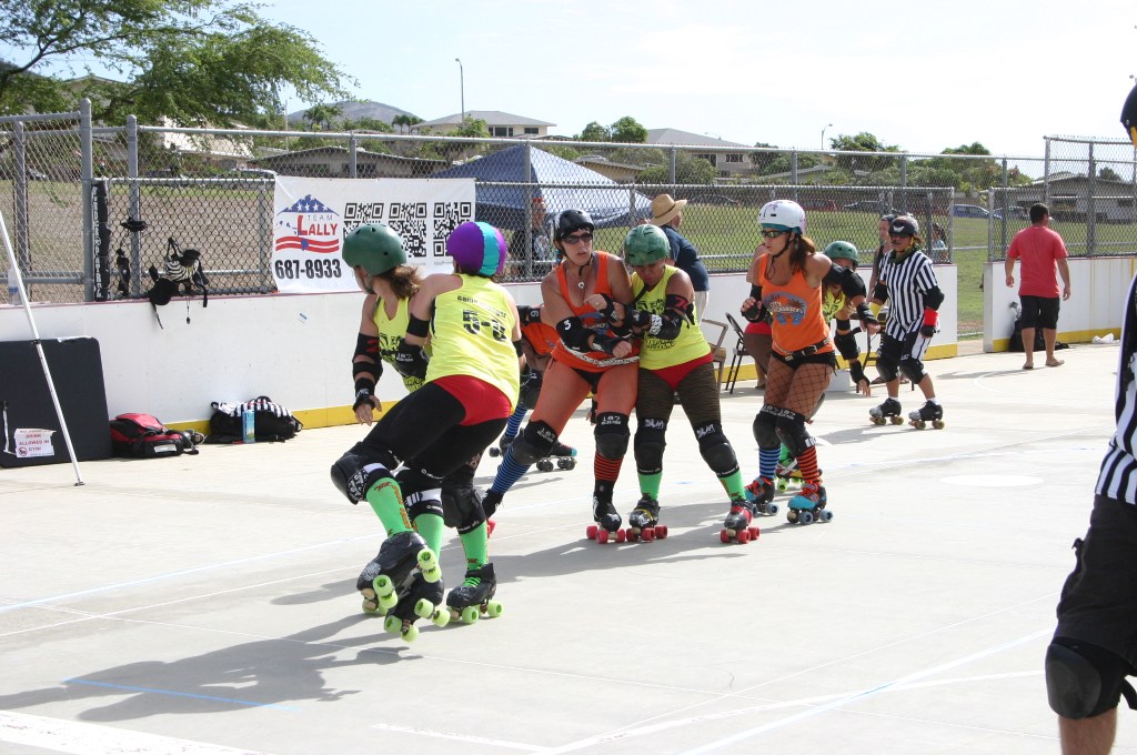 Aloha City Rollers had two home teams, the Dash Dolls and the Sneaky Tikis, which played monthly games during each roller derby season. ACR also had an all star team the Rock Stars which played against other leagues. This is a collection of some of the action shots from games and scrimmages.