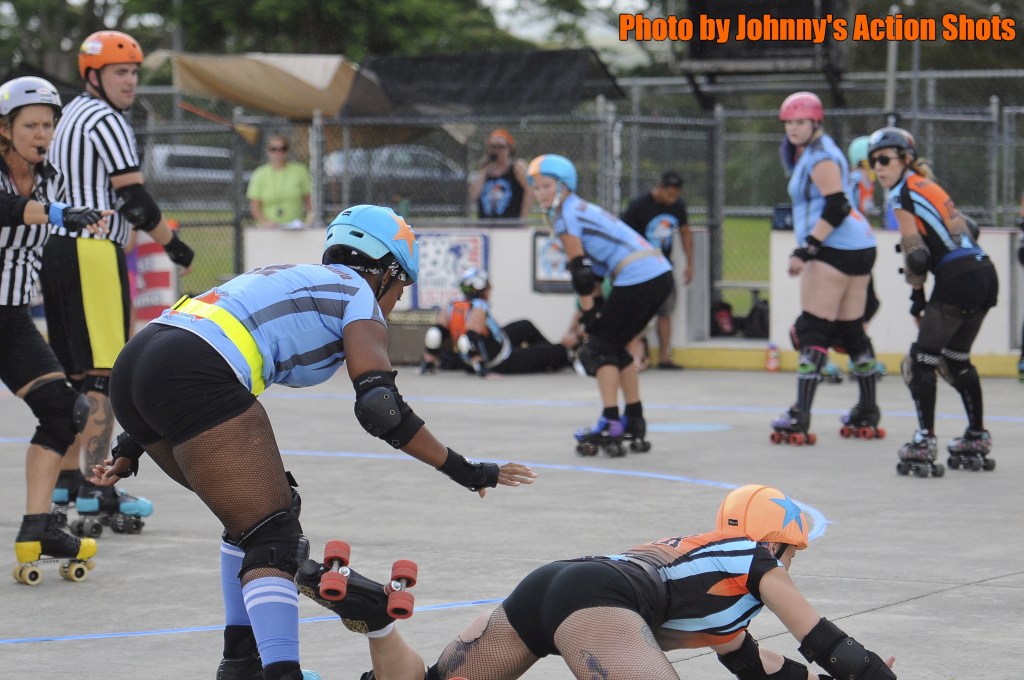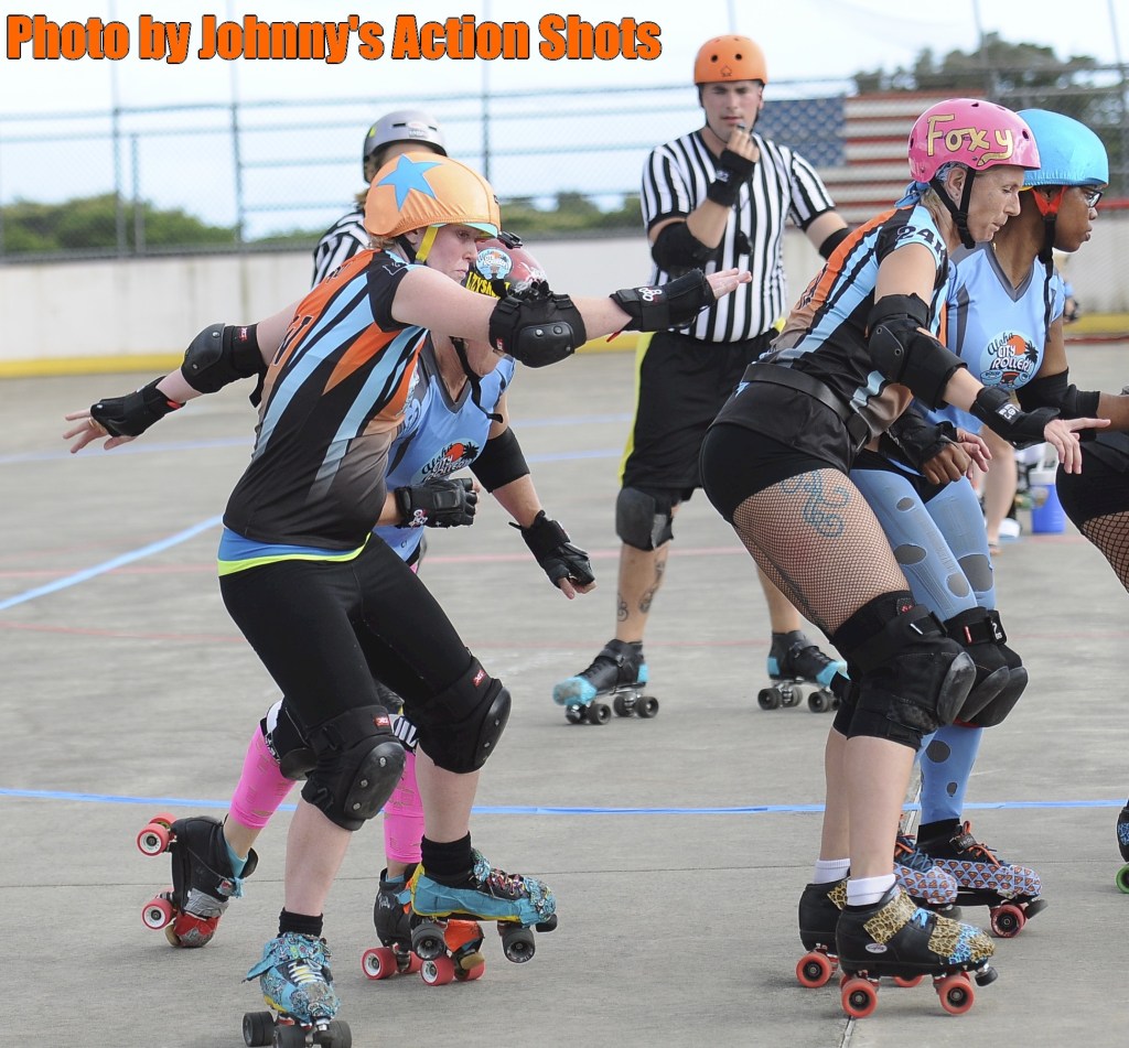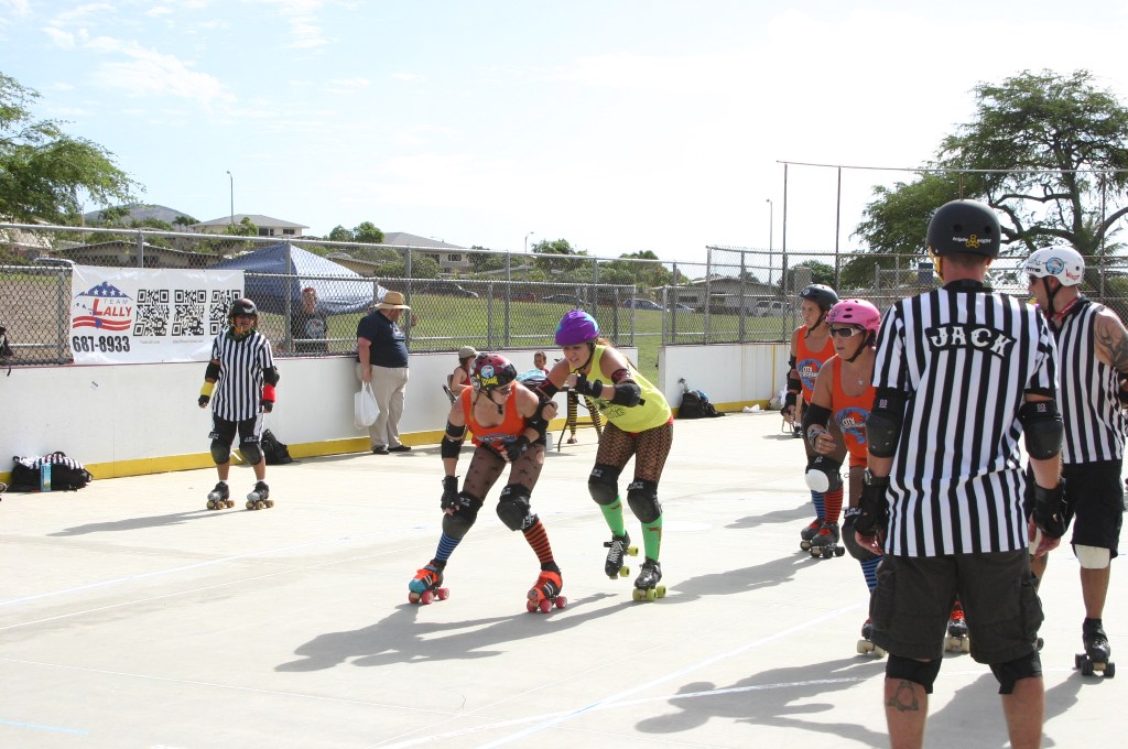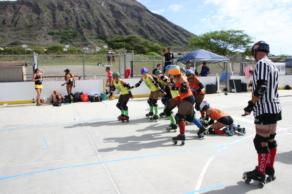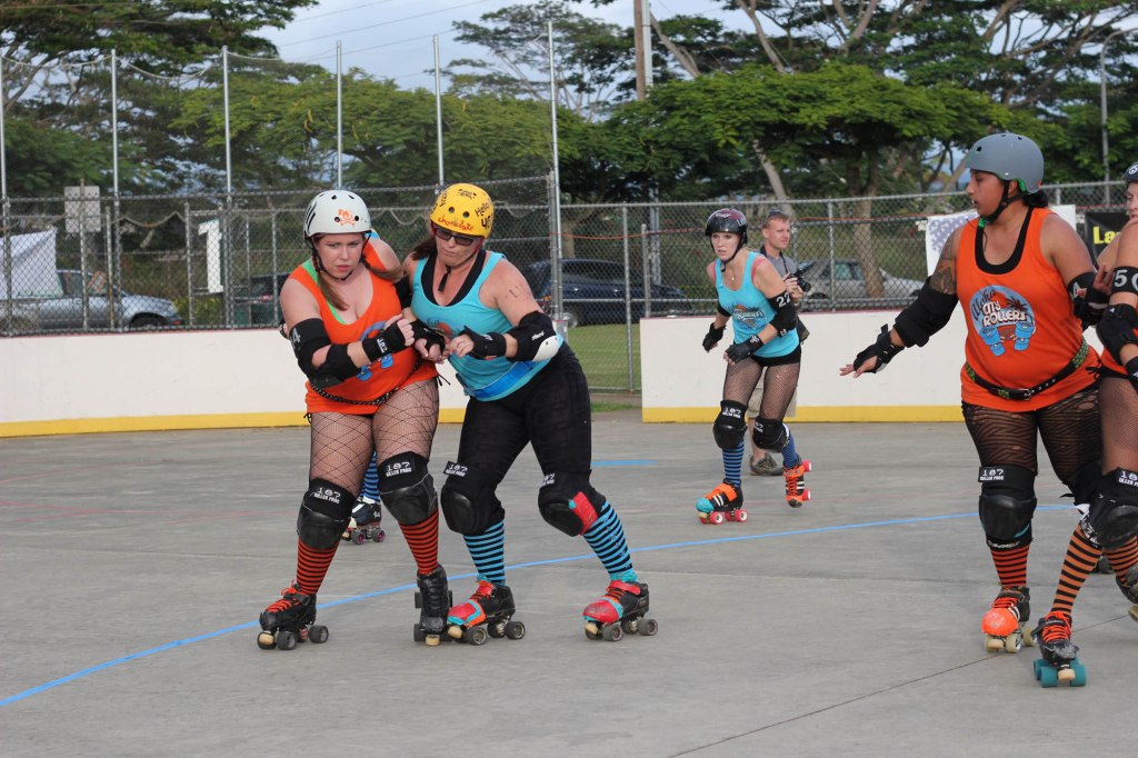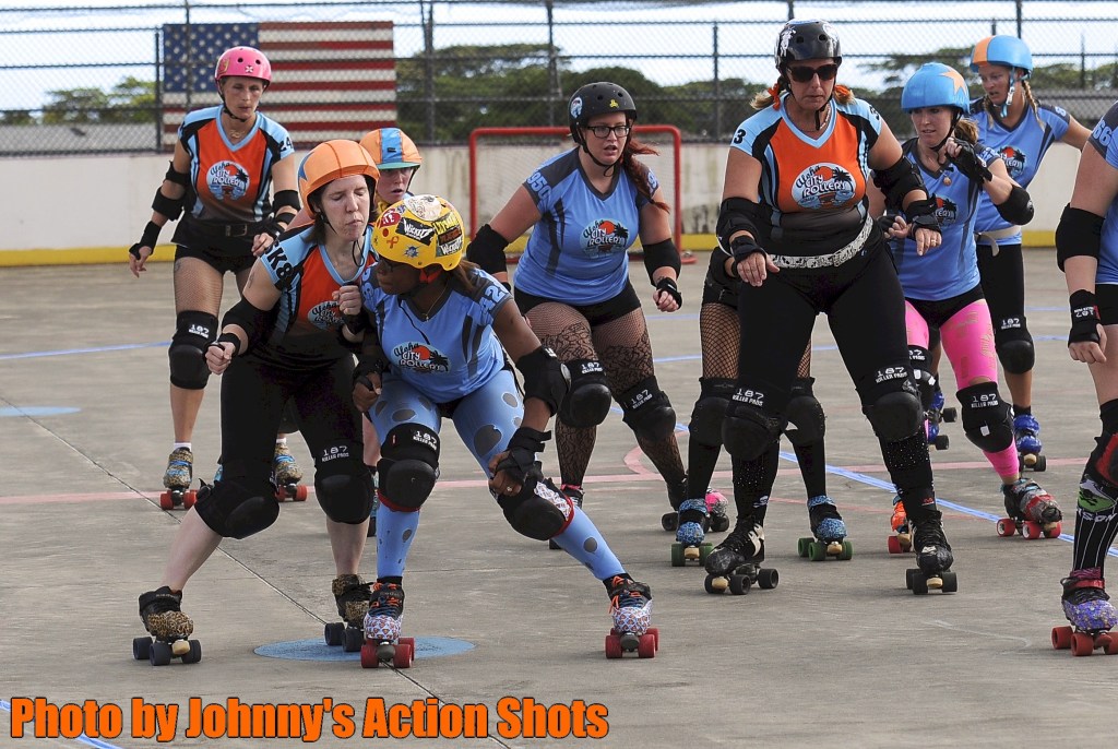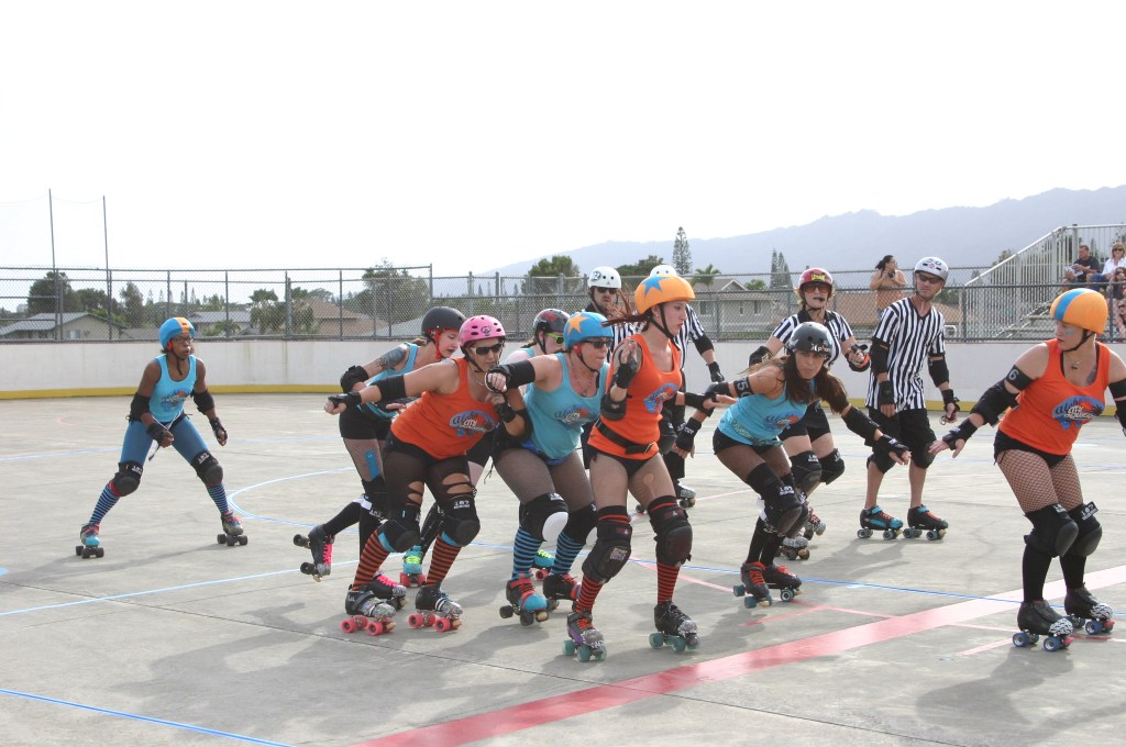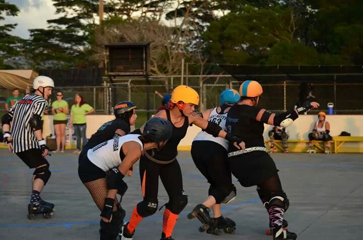 Aloha City Rollers had two home teams, the Dash Dolls and the Sneaky Tikis, which played monthly games during each roller derby season. ACR also had an all star team the Rock Stars which played against other leagues. This is a collection of some of the action shots from games and scrimmages.