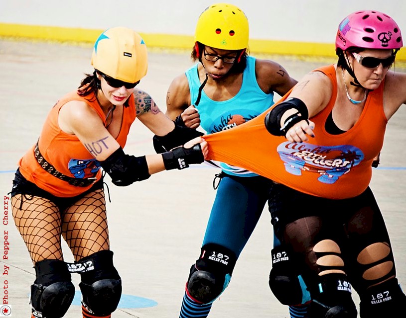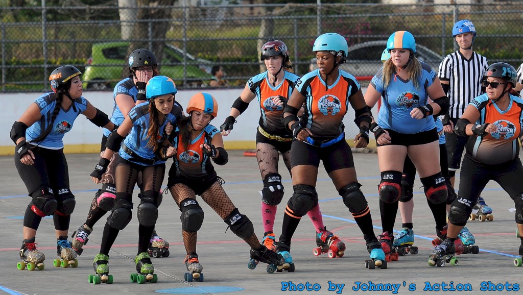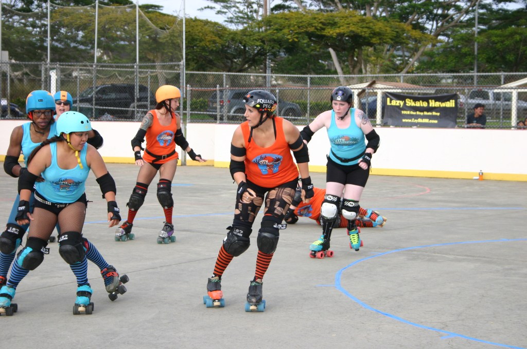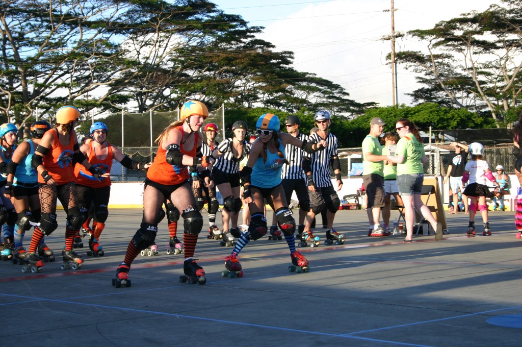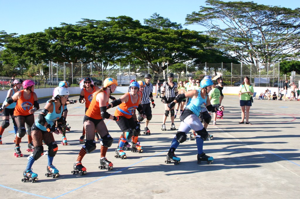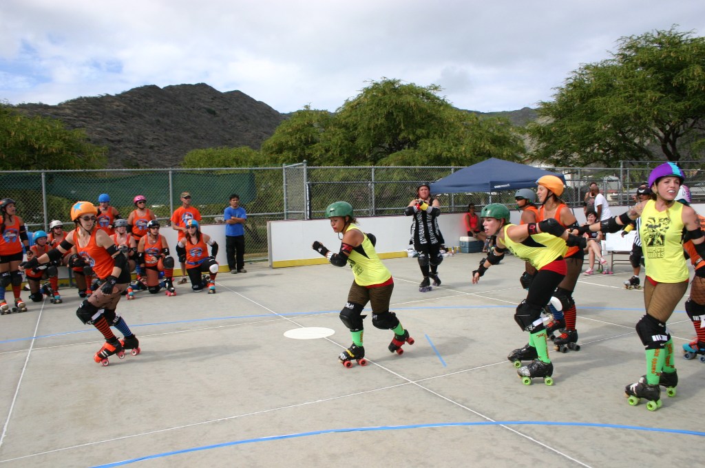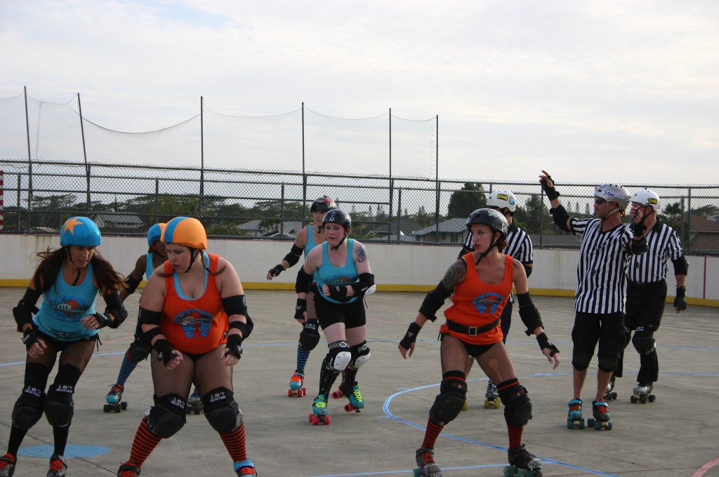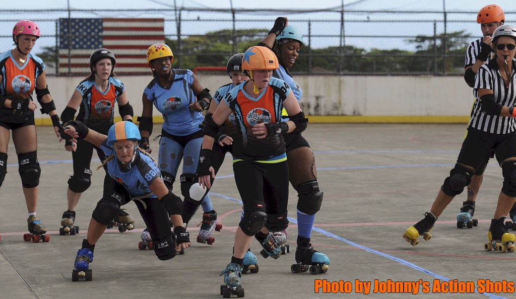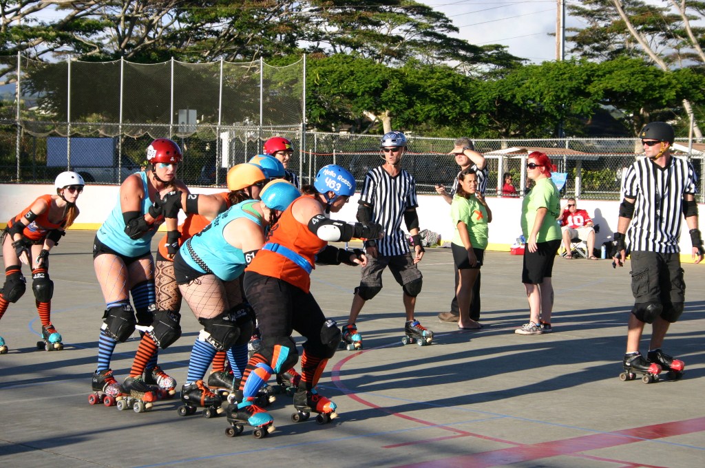 Aloha City Rollers had two home teams, the Dash Dolls and the Sneaky Tikis, which played monthly games during each roller derby season. ACR also had an all star team the Rock Stars which played against other leagues. This is a collection of some of the action shots from games and scrimmages.
