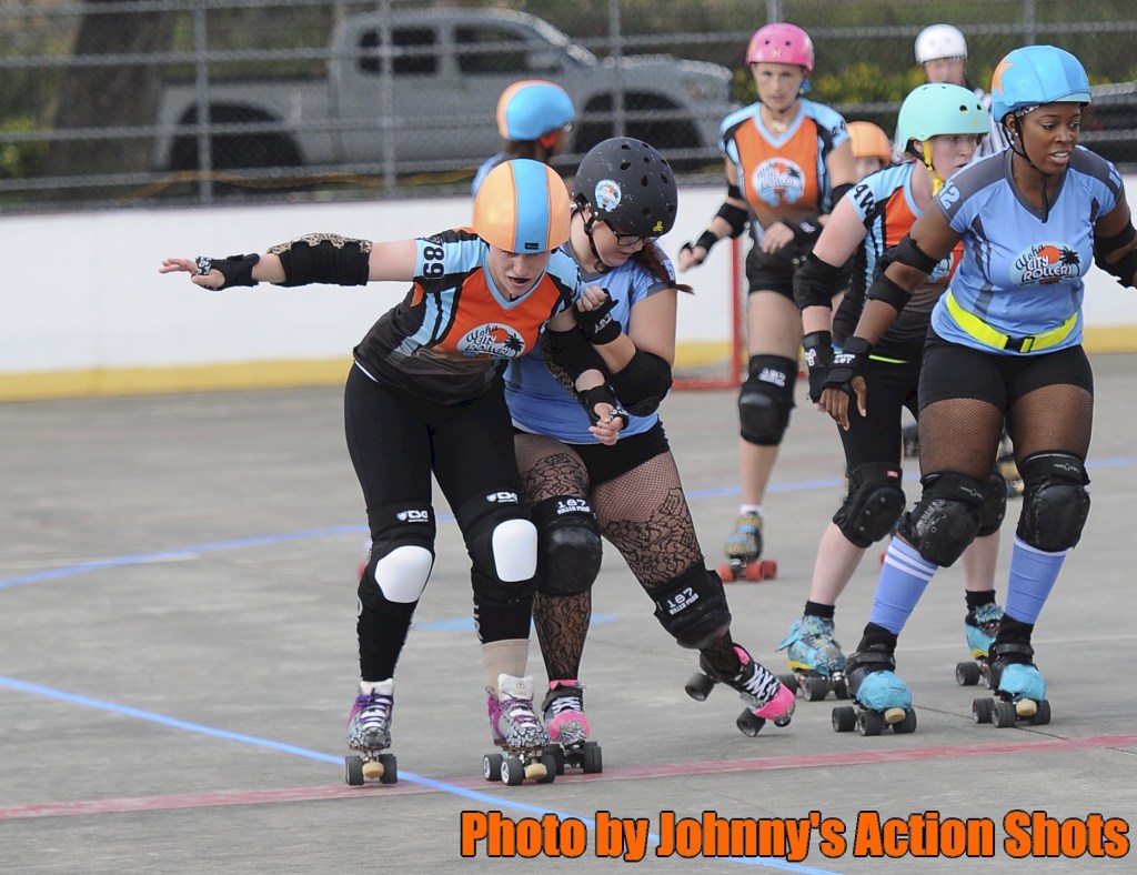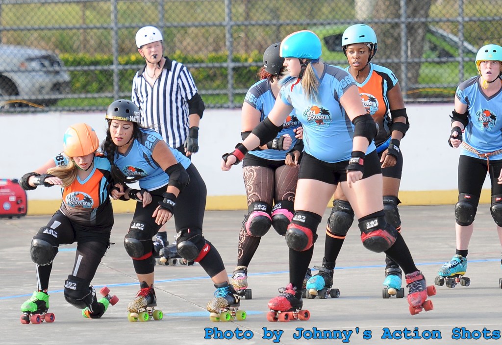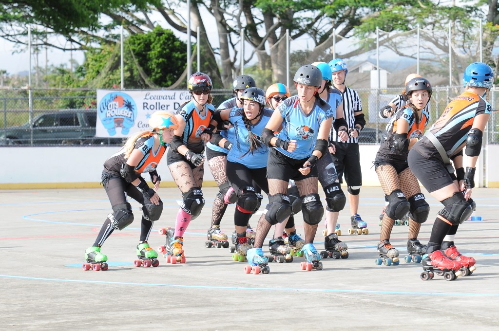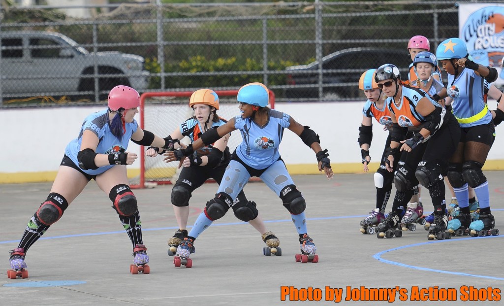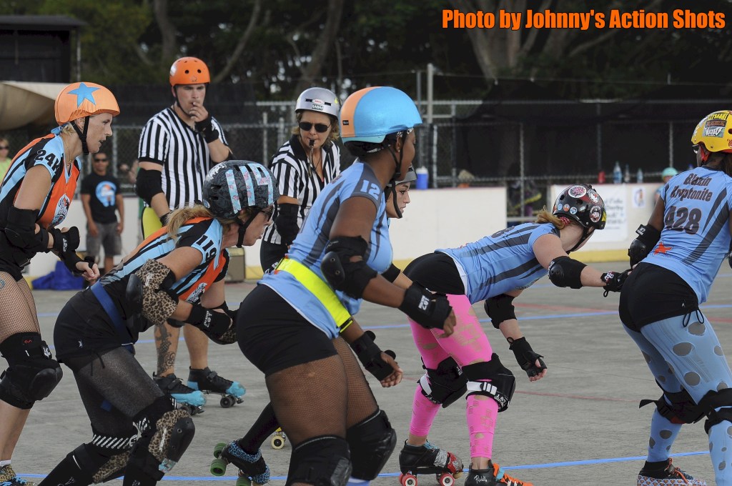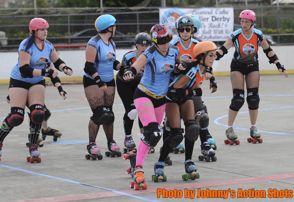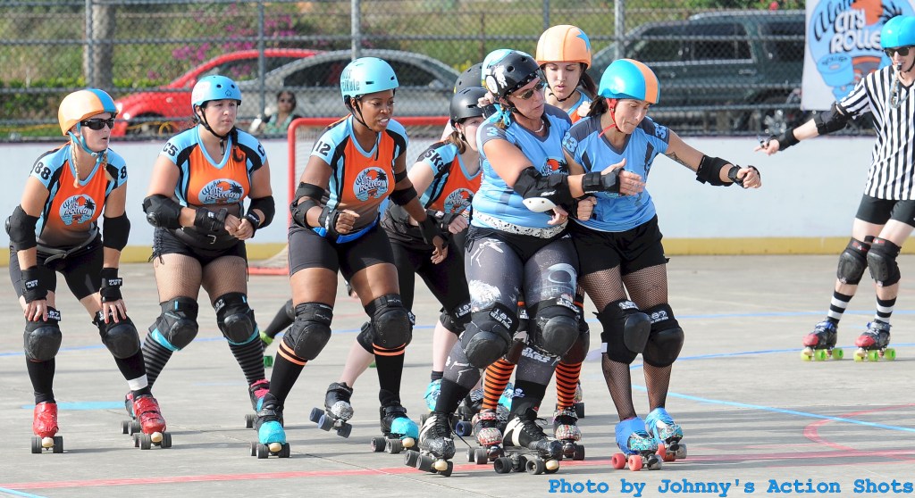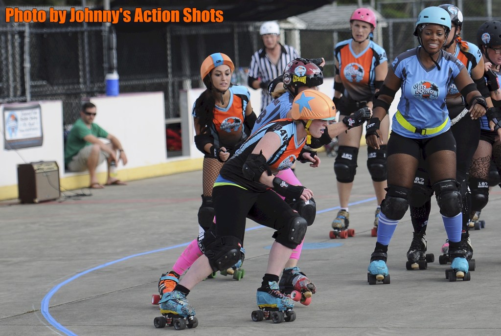 Aloha City Rollers had two home teams, the Dash Dolls and the Sneaky Tikis, which played monthly games during each roller derby season. ACR also had an all star team the Rock Stars which played against other leagues. This is a collection of some of the action shots from games and scrimmages.