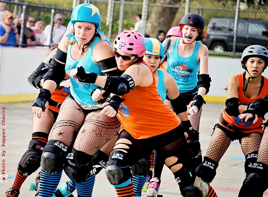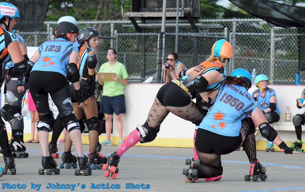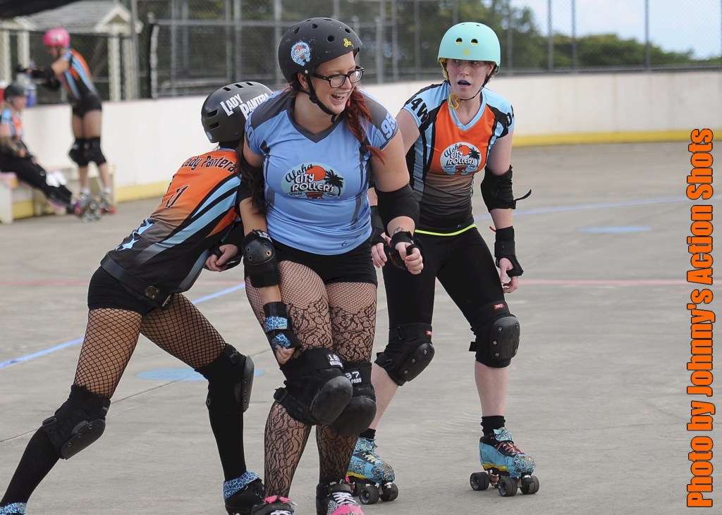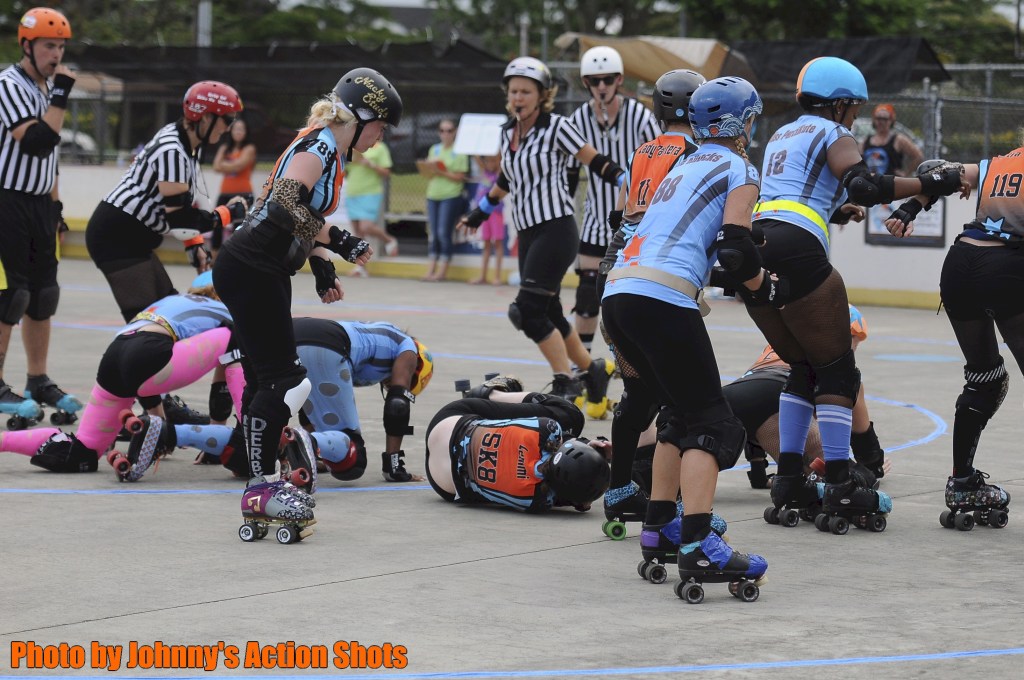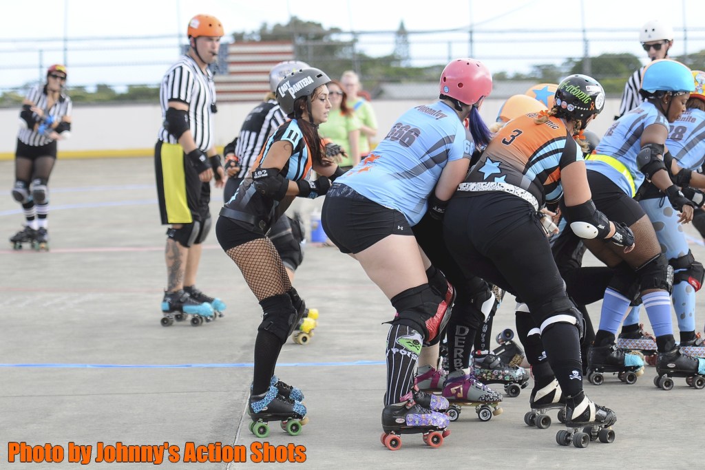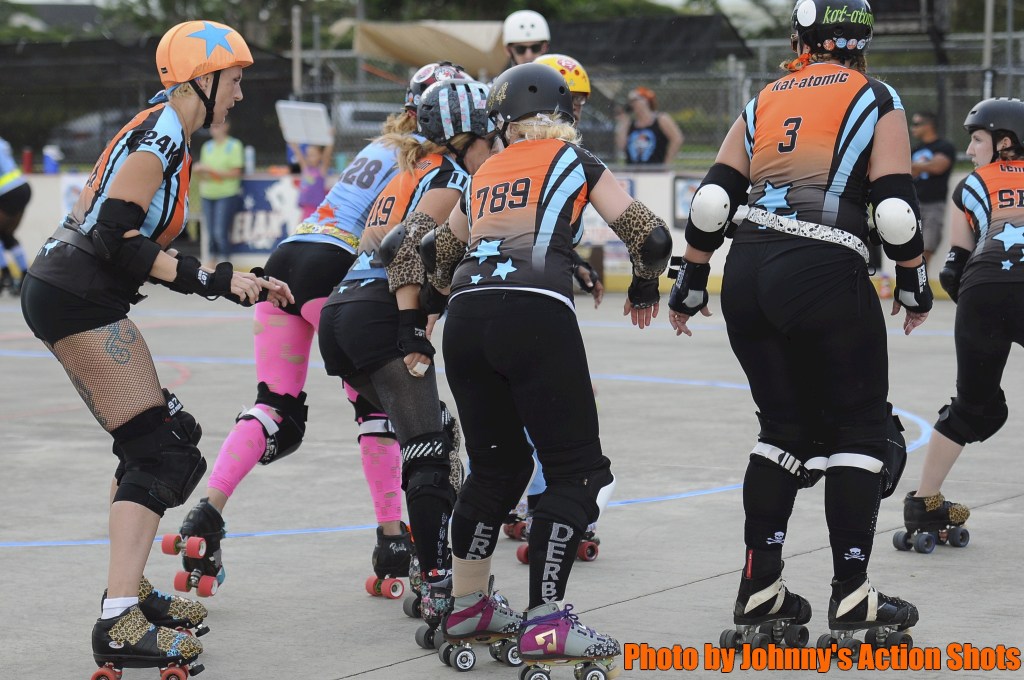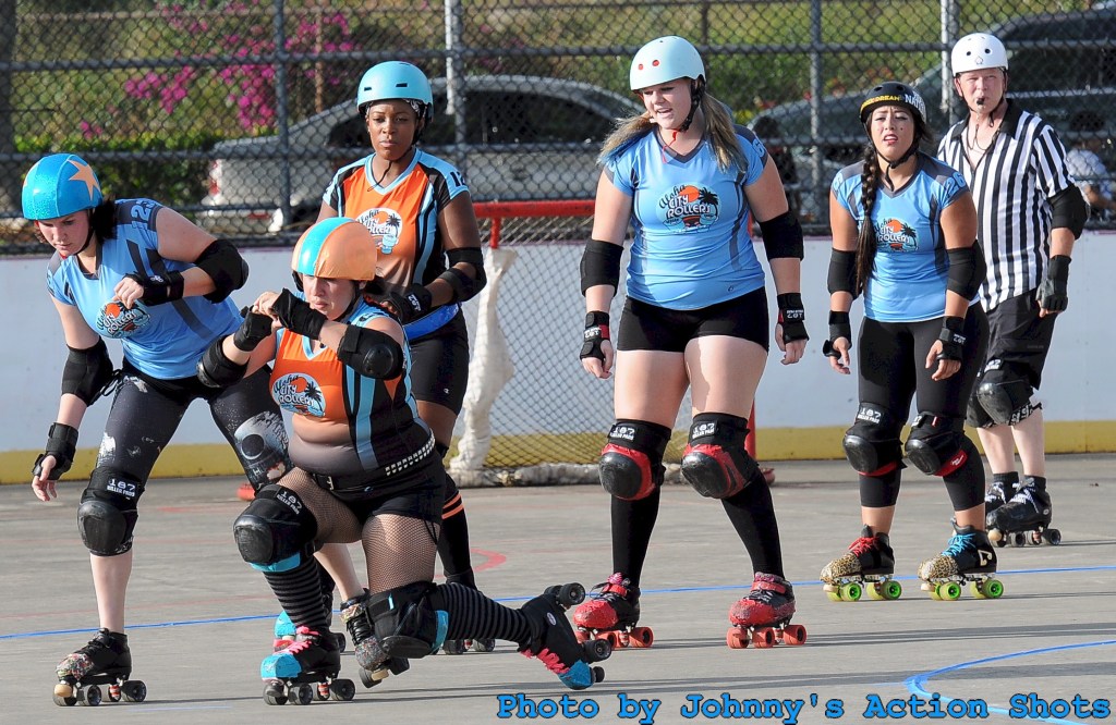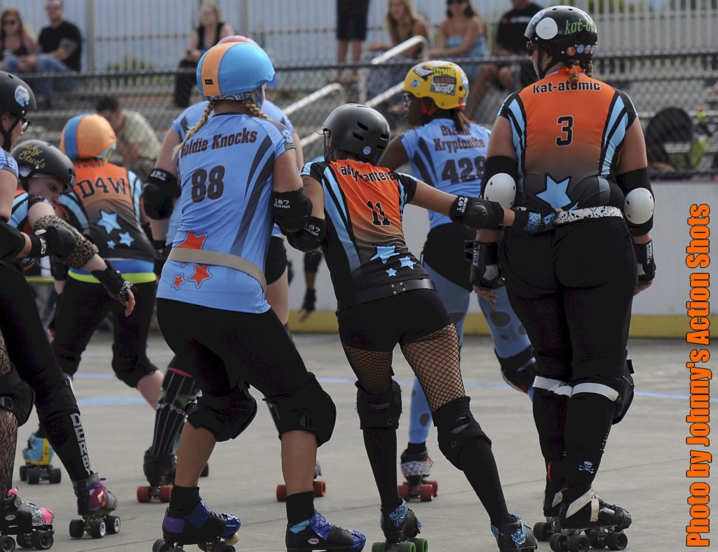Aloha City Rollers had two home teams, the Dash Dolls and the Sneaky Tikis, which played monthly games during each roller derby season. ACR also had an all star team the Rock Stars which played against other leagues. This is a collection of some of the action shots from games and scrimmages.