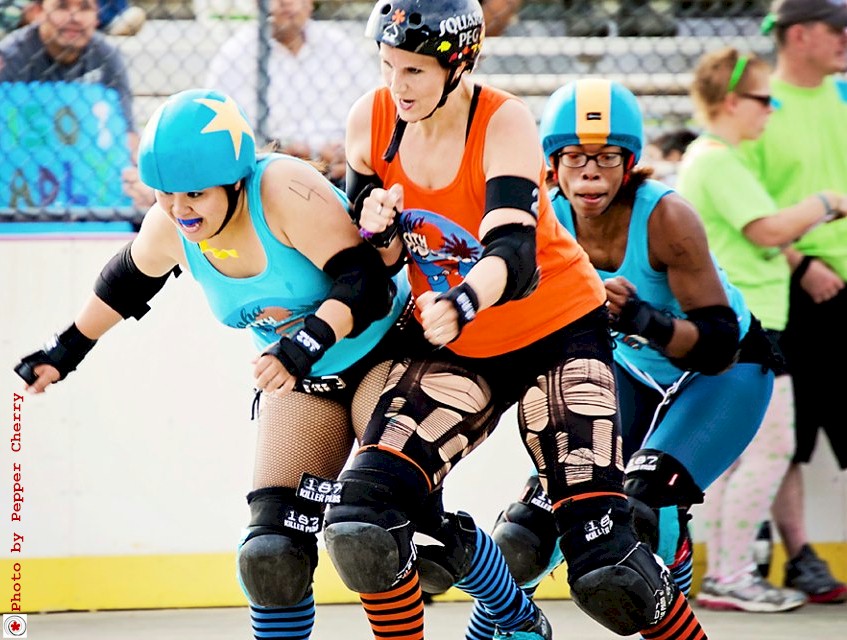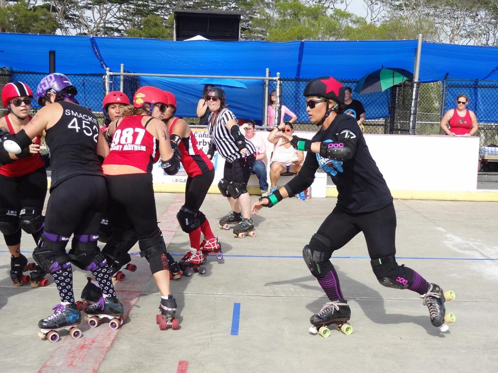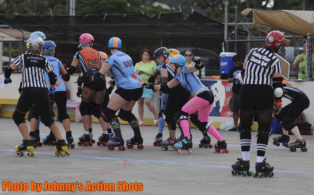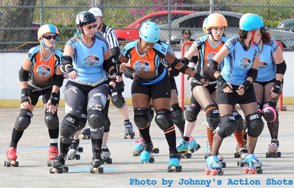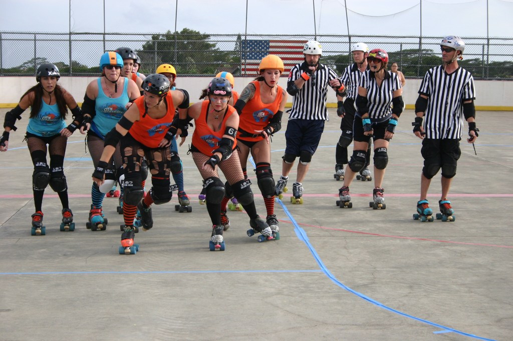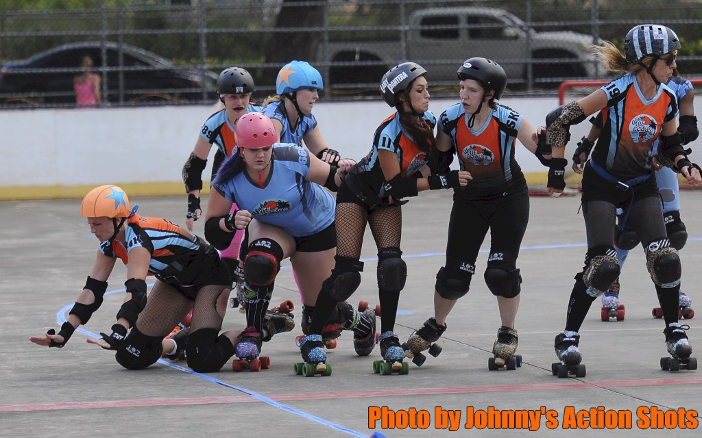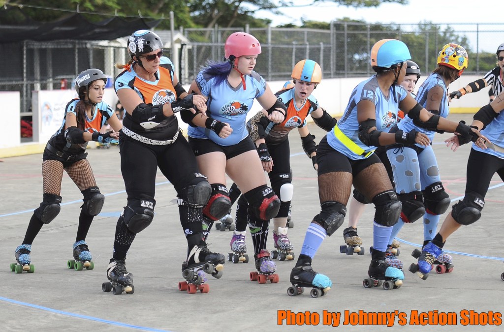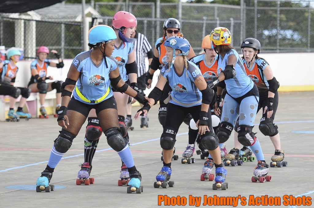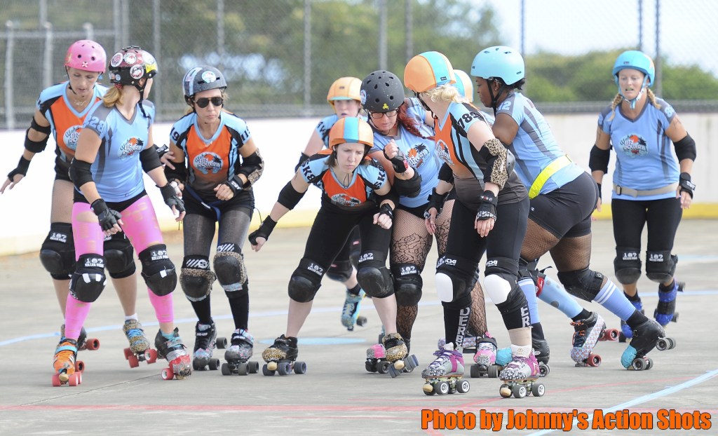Aloha City Rollers had two home teams, the Dash Dolls and the Sneaky Tikis, which played monthly games during each roller derby season. ACR also had an all star team the Rock Stars which played against other leagues. This is a collection of some of the action shots from games and scrimmages.