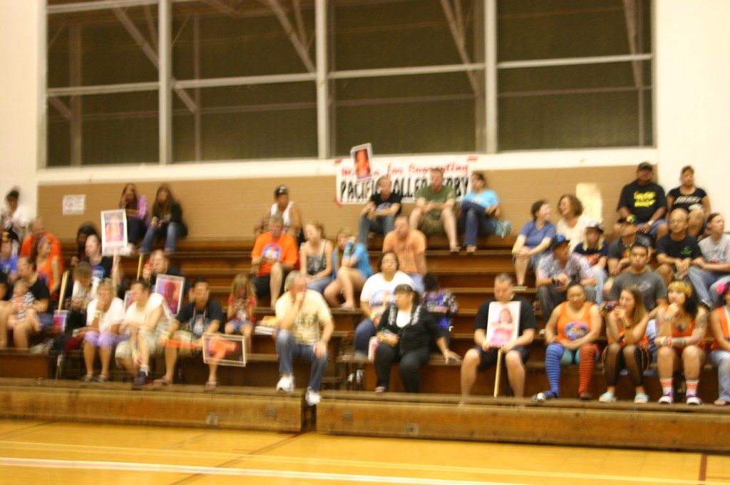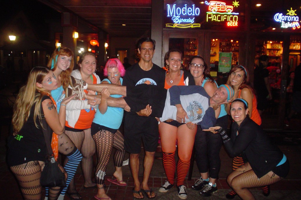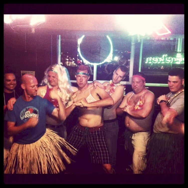 The Battle of the Islands asks each team to choose a song to play when the team is being introduced. ACR chose “We Will Rock You” by Queen. The ACR all star team is called the Rockstars because Oahu is a rock in the middle of the ocean and each of these roller derby badasses is a Rockstar! During the introduction, as the song played, the players stomped their skates twice then clapped while they skated around the track in a pace line. The crowd loved it and it really pumped up the players! The first game of the tournament was in an indoor gym with hardwood floors. ACR trained and usually played on a polished concrete track so it took some getting used to. ACRs Coach Handsome instilled into players don’t just play to win, also love playing the game. All of the players worked as a team with lots of high fives flying and smiling faces. We were having a blast! At the end of the game we had scored 69 points and we all started screaming, high five-ing and chanting “sixtynine – sixtynine – sixtynine!” But we didn’t win, the other team scored more points (I don’t even remember what their score was). But in a way we did win because we were a rag tag group of rebels who just played their first tournament and scored 69 hard earned points. Everyone was so full of adrenaline and feelings of accomplishment we couldn’t wait for the after party to all celebrate together.