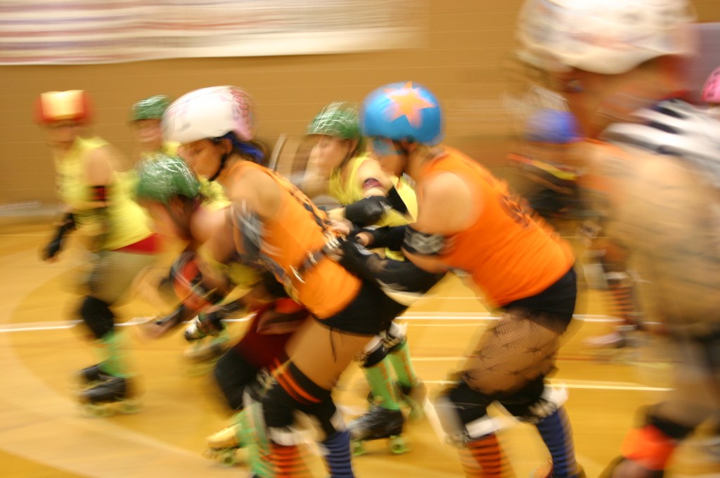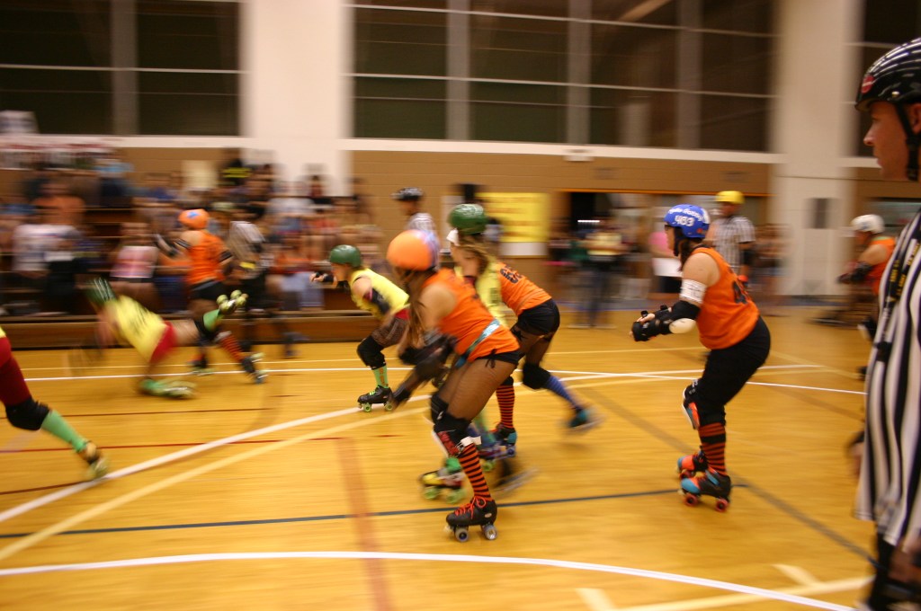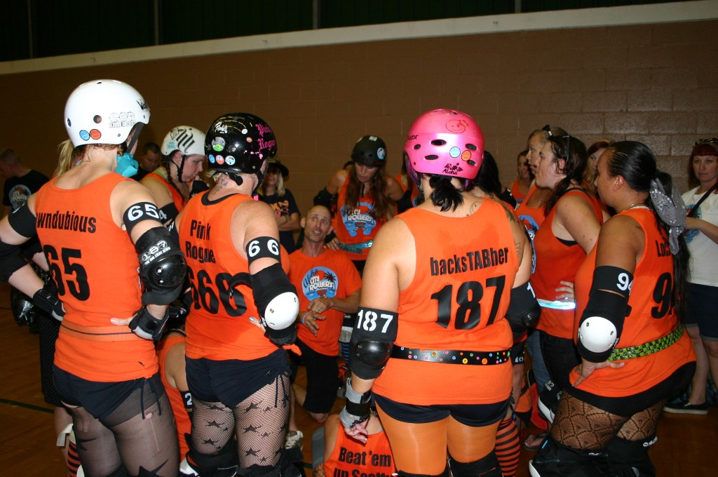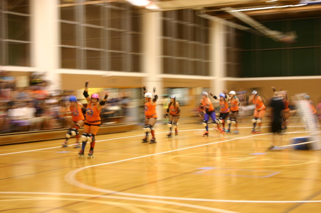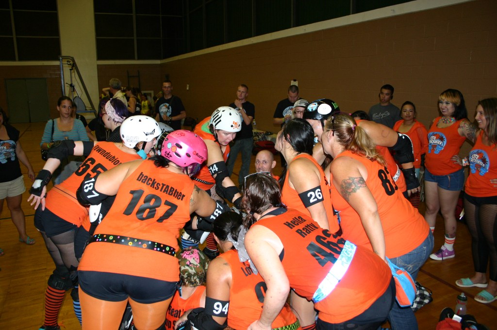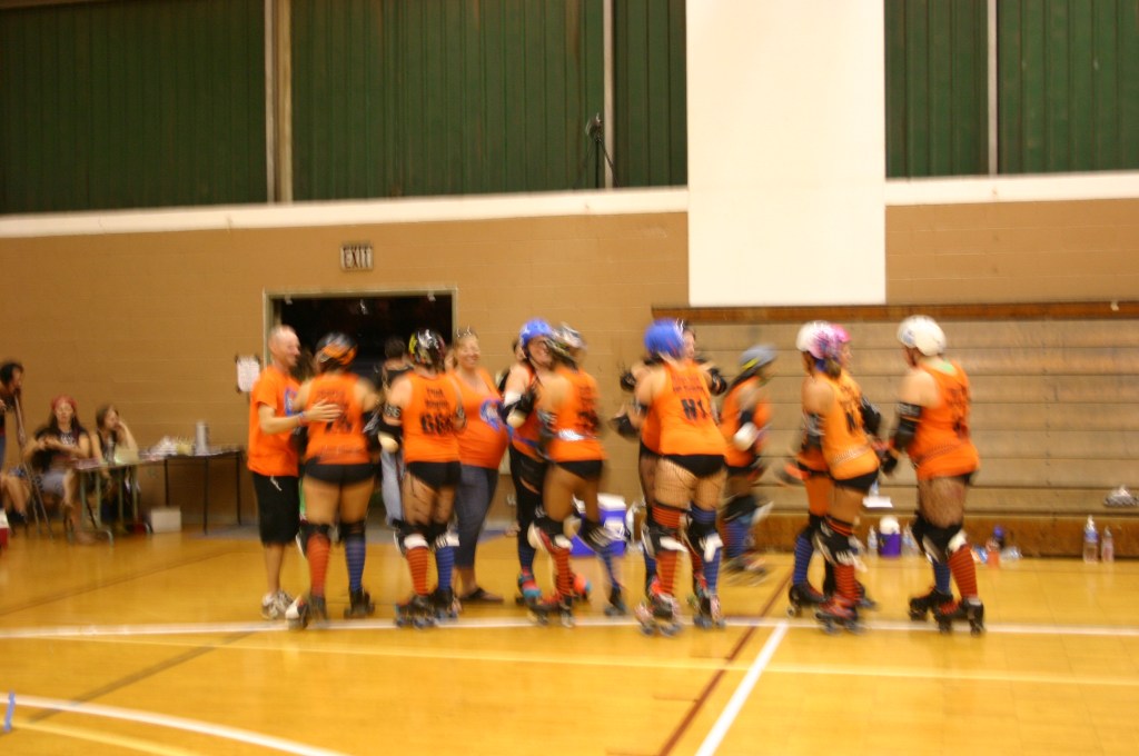 In roller derby, if you don’t win a game you can still win the after party! After every scrimmage, bout, or tournament there is always an after party. It may be a track side pot luck, it may be at a restaurant, it may be at someone’s home, it may be at a bar, it may be at the beach, it may be in a park. The after party is a time for everyone involved in the roller derby event to get together and hang out. The rivalry disappears and everyone can have a good time. Sometimes alcohol is involved, sometimes everyone just enjoys a meal together.