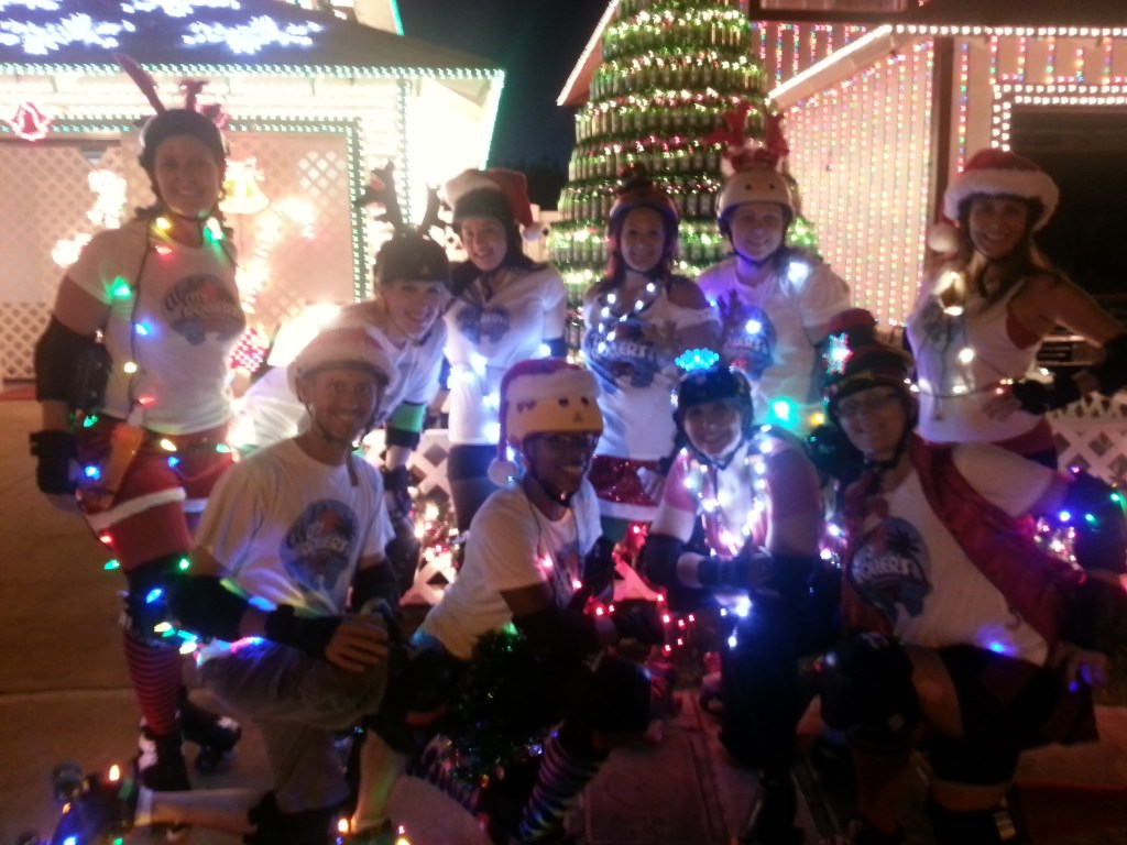 Roller derby players often become more than team mates, they become your family. You not only work your butts off together during practices and have fun playing bouts but enjoy holidays and free time together too. Aloha City Rollers league members planned fun events so we could all hang out and do cool stuff like karaoke, camp, go to the beach, play games, clean skates, eat a meal, yard sale, paint, craft, ice skate, run endurance races and more.