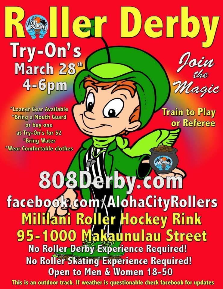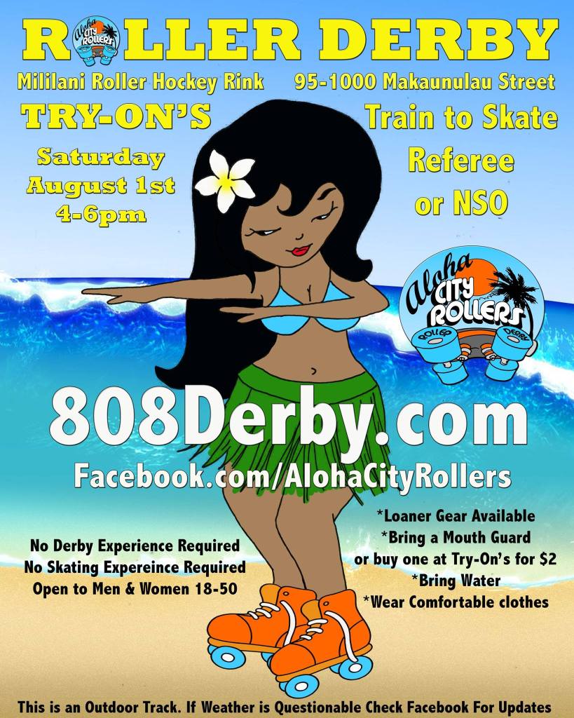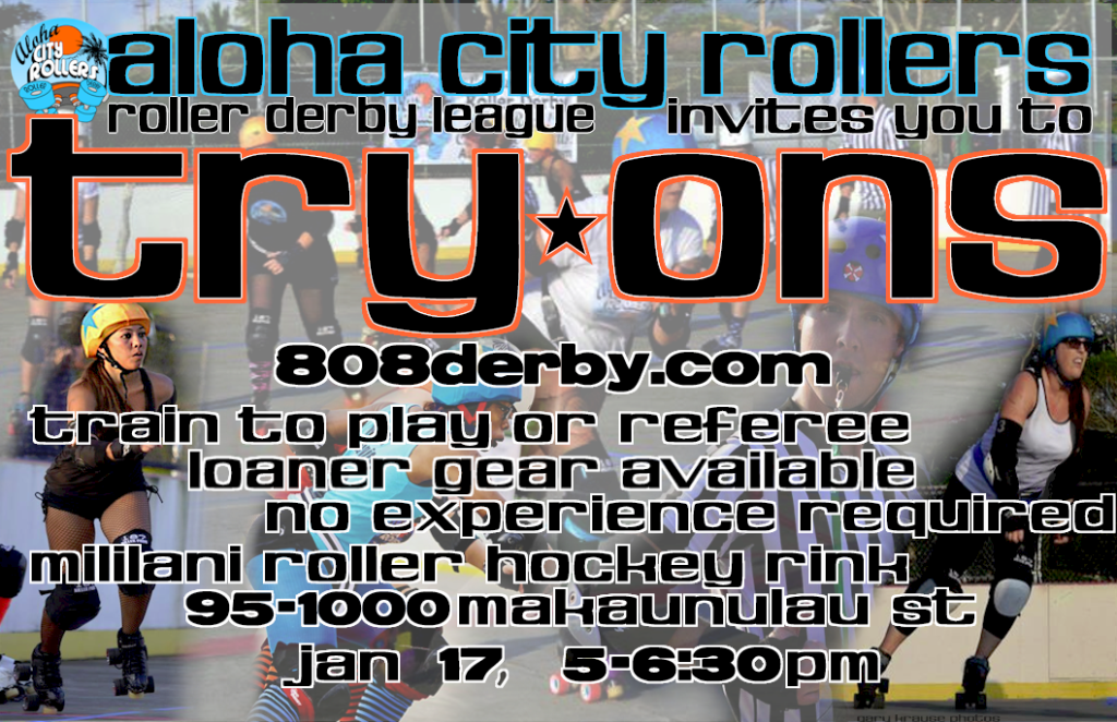 Aloha City Rollers did not have try outs we held try ons. Roller derby is hard work. It requires dedication to attending multiple weekly practices. Roller derby is physically and mentally challenging and is not for everyone. Aloha City Rollers had skates and safety gear for prospective fresh meat. They could bring a mouth guard or buy one at the try on.